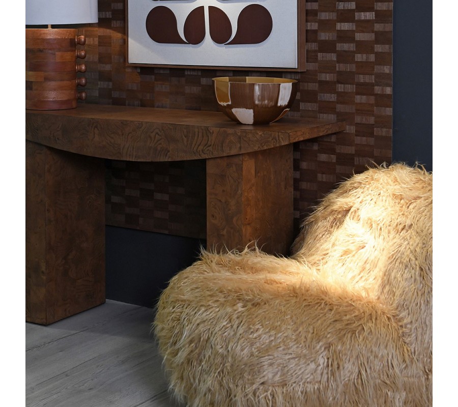 Konzolový stolík Ajaxio prinesie do vašej predsiene očarujúci prírodný vizuál v modernom prevedení. Minimalistická silueta dáva priestor naplno vyniknú originálnej štruktúre dreva burl, ktoré vytvorí v miestnosti pocit tepla a útulnosti.