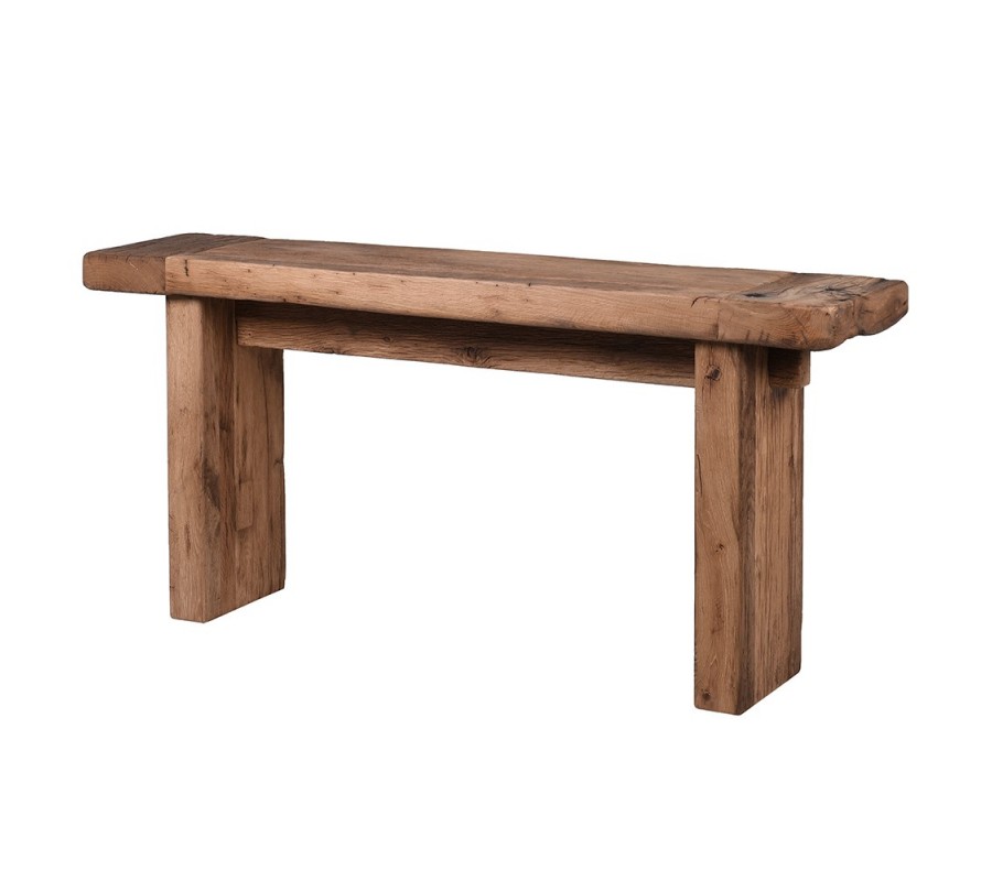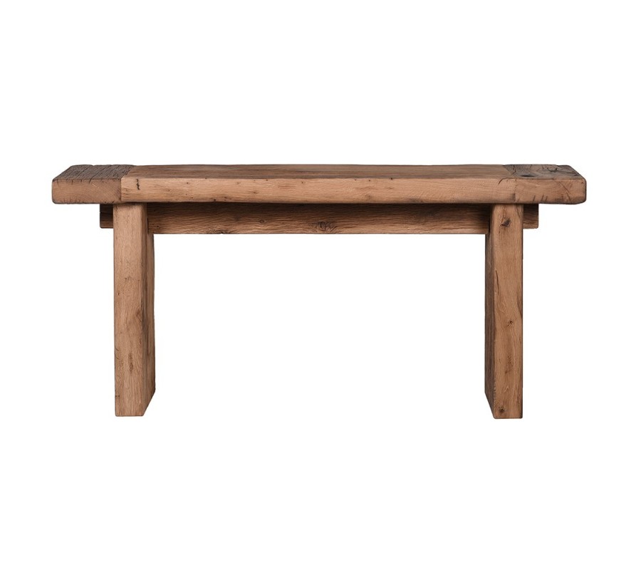 Luxusný vintage konzolový stolík Roble z masívneho dubového dreva v prírodnej svetlej hnedej farbe s výraznou štruktúrou 160 cm