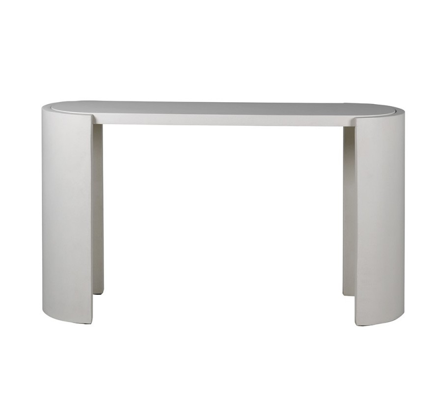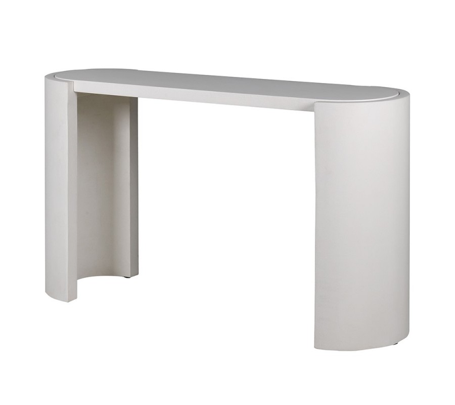 Konzolový stolík má elegantný oblúkový tvar, ktorý vytvára jemné krivky a dodáva mu moderný a minimalistický vzhľad. Povrch je natretý vápennou maltou v jemnom bielom odtieni, čo mu dodáva prirodzený a matný vzhľad s nádychom rustikálnej estetiky. Vyrobený je z topoľového dreva, ktoré zaisťuje jeho ľahkosť a zároveň pevnosť.