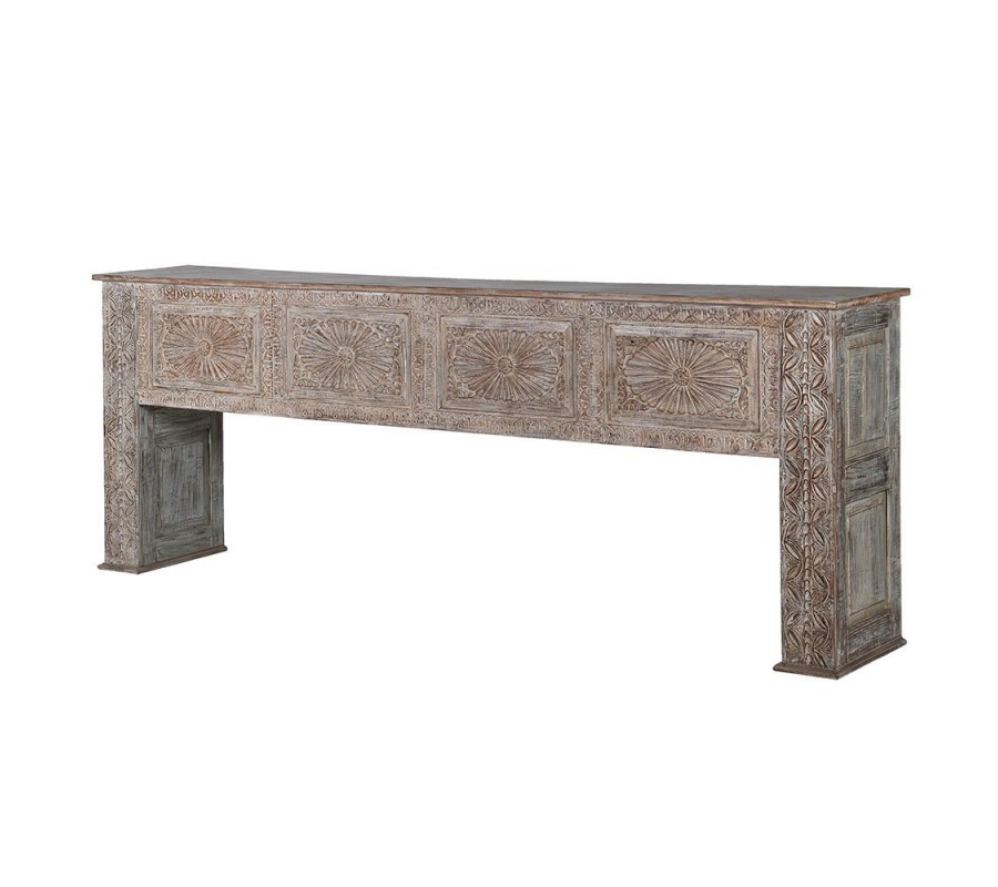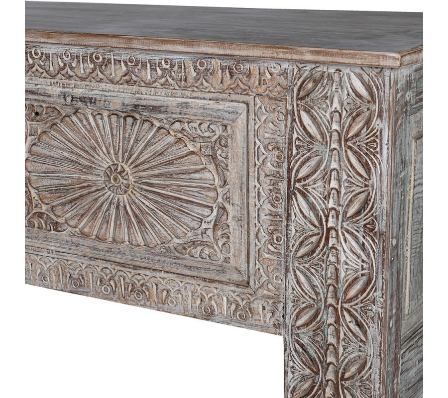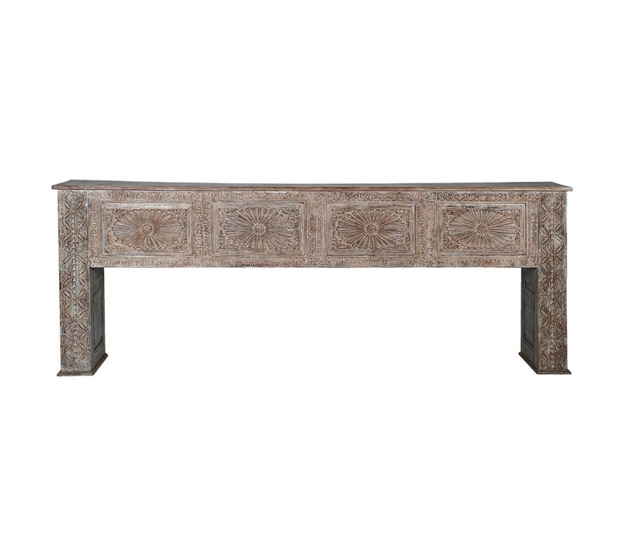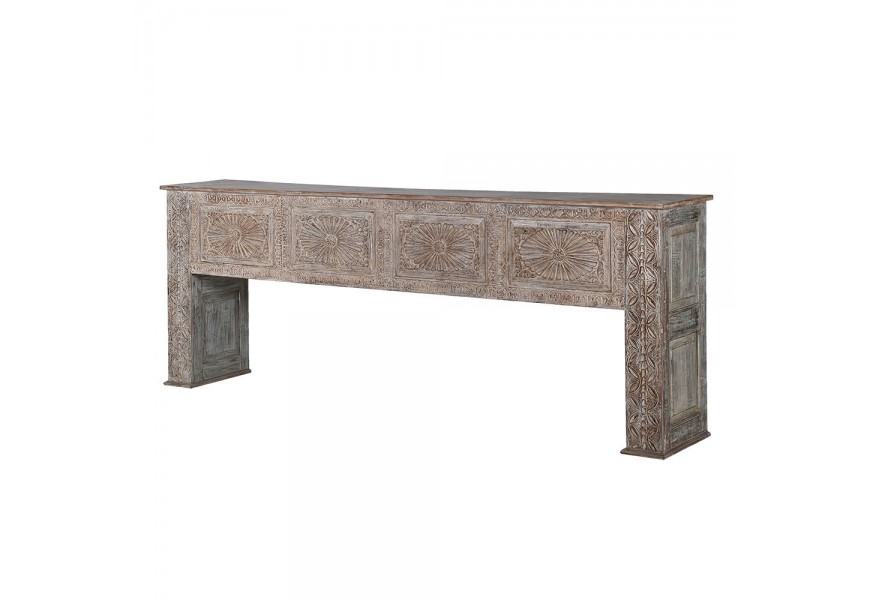 Luxusný starožitný rustikálny drevený konzolový stolík Antique v obdĺžnikovom tvare s vyrezávaním 282 cm