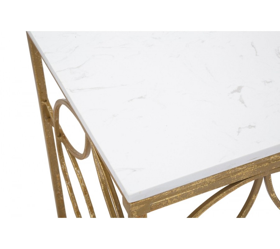 Konzolový stolík Fiona vám pomôže vďaka bielemu mramoru a zlatej metalickej farbe priestor presvetliť. Môžete ho skombinovať so zrkadlom v zlatom kovovom ráme, či so sedačkou s podobnými kovovými prvkami v art deco štýle. Hodí sa tiež do jedálne, k stolu s mramorovou vrchnou doskou.