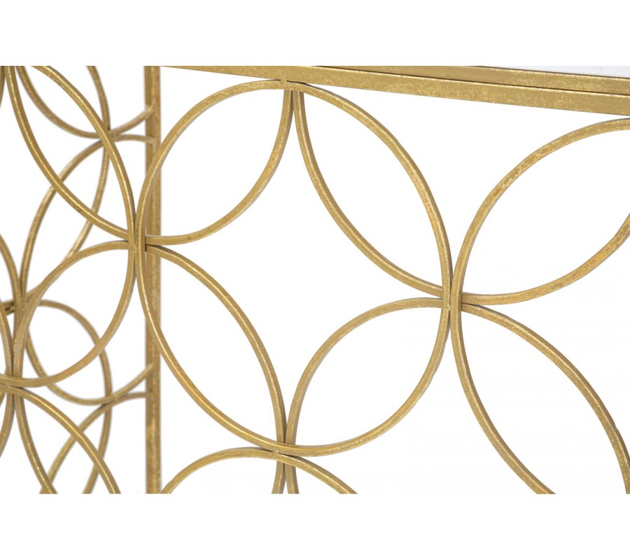 Konzolový stolík Fiona vás očarí svojou geometrickou kompozíciou. V kombinácii s bielym mramorom a zlatou farbou prinesie do miestnosti elegantnú art deco estetiku.