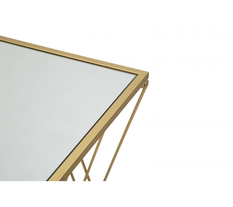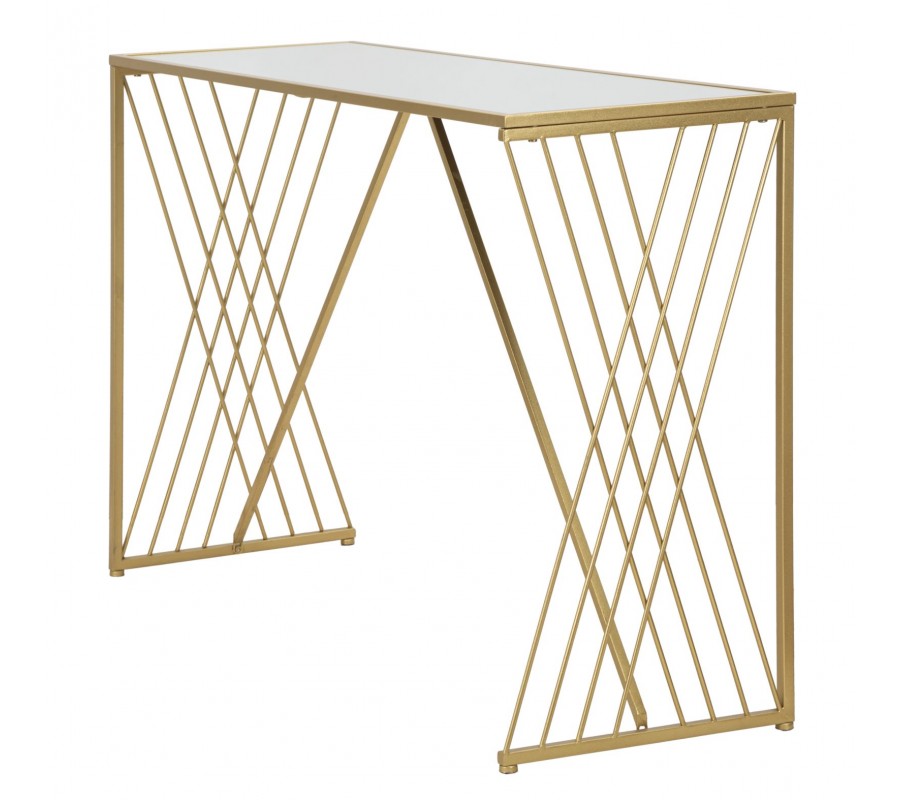 Kombinácia zrkadlového skla a žiarivo zlatej kovovej podstavy dodáva dizajnu exkluzívny glamour vizuál. Lesklé povrch odrážajú svetlo a v kombinácii so stolnou lampou vám pomôžu znásobiť osvetlenie miestnosti. V predsieni môžete konzolový stolík Mardella skombinovať so zrkadlom v zlatom ráme, v obývačke zasa výborne doplní sedačku so zlatými nožičkami v art deco štýle.