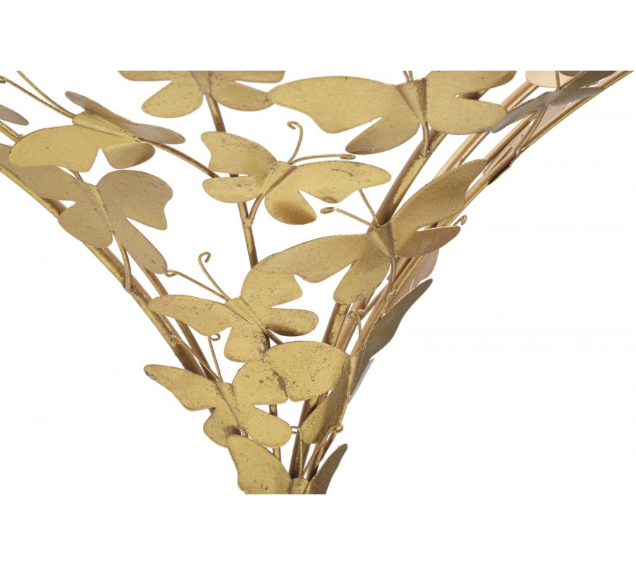 Podstavu tvorí nosná konštrukcia z polkruhového rámu a troch prehnutých kovových prútov. Tie definujú elegantný, smerom dole sa zužujúci tvar podstavy. K nosnej konštrukcii sú upevnená sieť kovových ornamentov v tvare motýľov, ktorá vytvára pôsobivý dynamický vizuál. Prevedenie v zlatej farbe dodáva nábytku nádych luxusu.