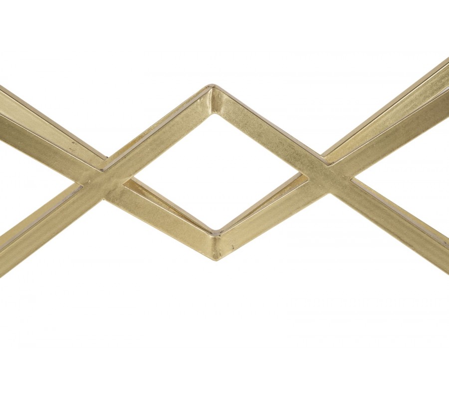 Konzolový stolík Triangolo Oro bude štýlovým doplnkom vašej predsiene či jedálne, ktorý spája praktickú a funkčnú odkladaciu plochu s výrazným dekoračným charakterom podstavy. Lesklé sklo a zlatá farba dodávajú nábytku exkluzívny nádych glamouru, zatiaľ čo geometrický dizajn podčiarkuje art deco estetiku.