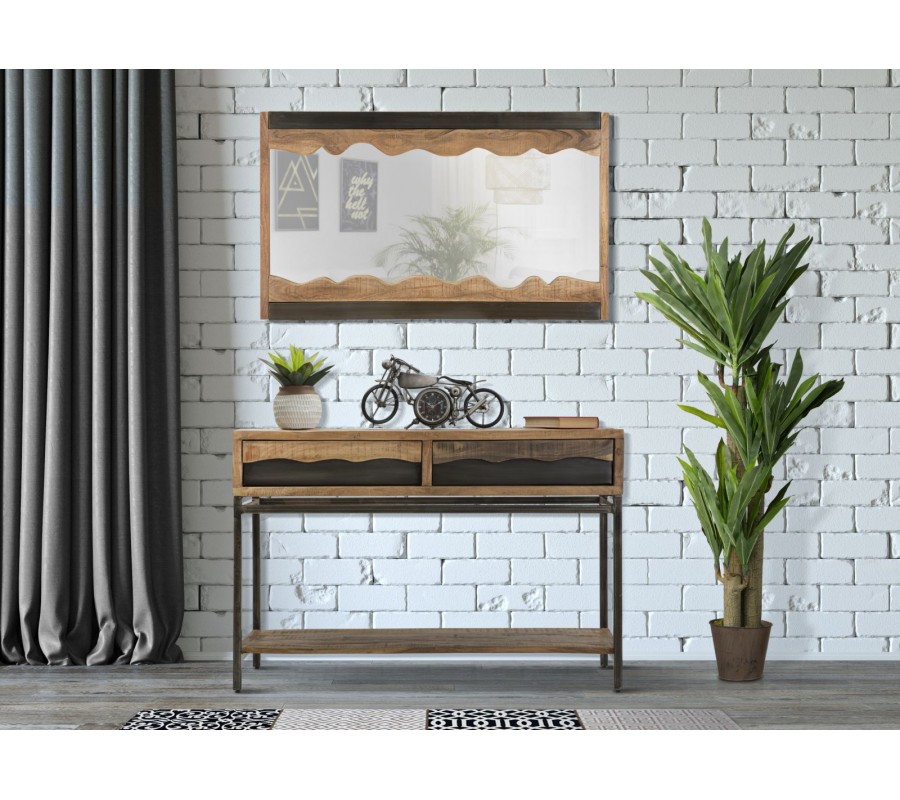 Konzolový stolík sa dokonale hodí do industriálnych, loftových či moderných interiérov, kde môže slúžiť ako elegantný prvok v predsieni, chodbe, obývačke alebo domácej pracovni. Výborne sa kombinuje s masívnym dreveným nábytkom, kovovými akcentmi a surovými materiálmi ako betón alebo tehla. Skvele ladí s tmavými koženými doplnkami, kovovými svietidlami a minimalistickými dekoráciami, ktoré zvýraznia jeho surový, no zároveň sofistikovaný vzhľad.