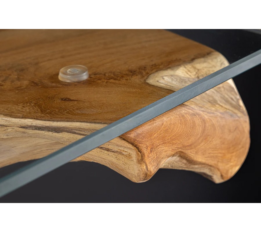 Konzolový stolík Root prinesie do vašej predsiene či jedálne divokú krásu masívneho dreva. Organický dizajn sofistikovane dopĺňa sklenená vrchná doska a tento nábytok je tak nie len vizuálne pôsobivý, ale aj funkčný.
