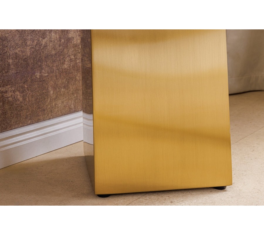 Konzolový stolík Hejdy skvele doplní predsieň zariadenú v art deco štýle, kde ho môžete skombinovať so zrkadlom so zlatým rámom. Hodí sa tiež do jedálne v glamour štýle, kde vynikne jeho exkluzívny charakter. Je tiež ideálnym doplnkom k zadnej strane sedačky so zamatovým alebo buklé poťahom vo výraznej farbe.
