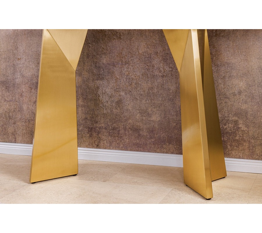 Podstavu tvoria dve nohy s atypickým geometrickým dizajnom, ktorý im dodáva avantgardný skulpturálny vizuál. Každá noha má pôdorys v tvare V. Vrcholy smerujú k sebe a vo vrchnej časti sa nachádza trojuholníkový prvok, ktorý zabezpečuje výbornú stabilitu vrchnej dosky. Originálny tvar zdôrazňuje aj lesklá zlatá farba. Nohy sú vyrobené z kovu.