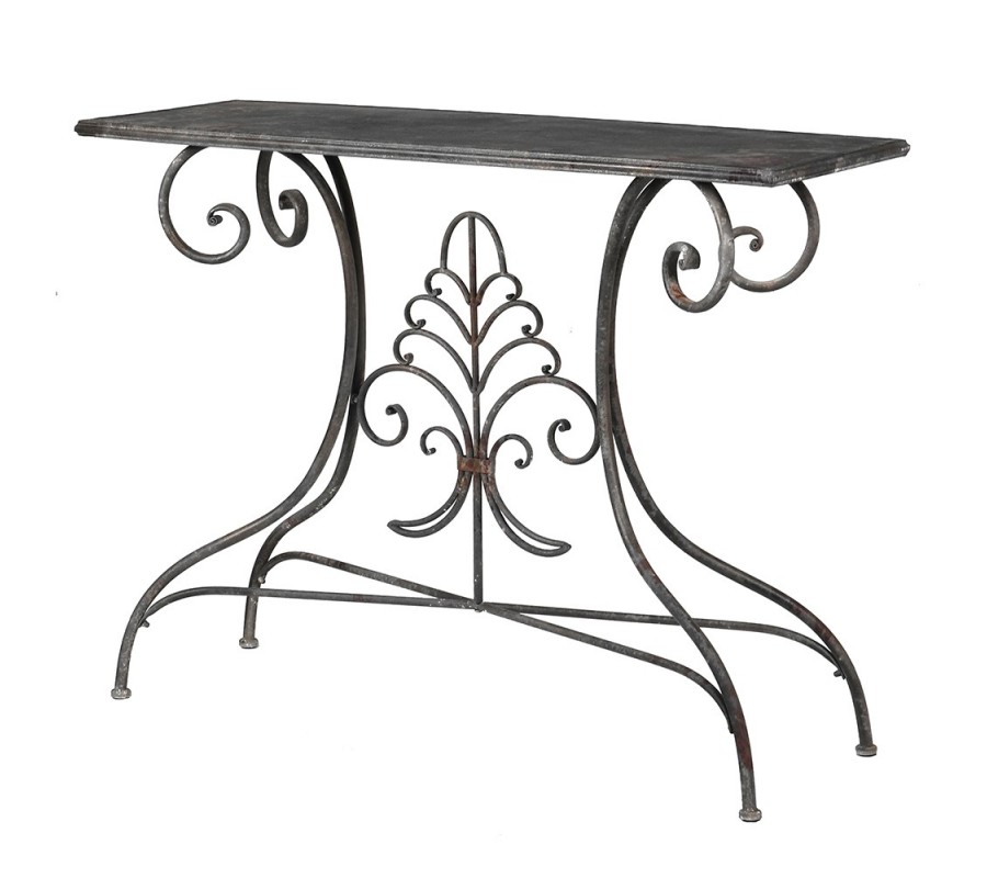 Vintage obdĺžnikový kovový čierny konzolový stolík Turia s florálnym zdobením 122 cm