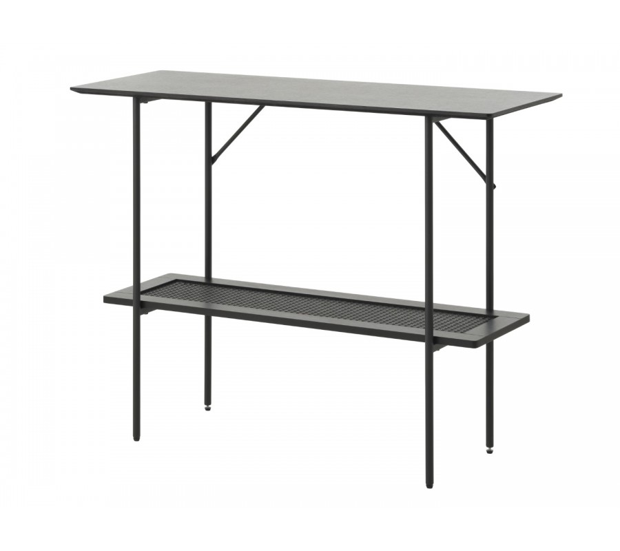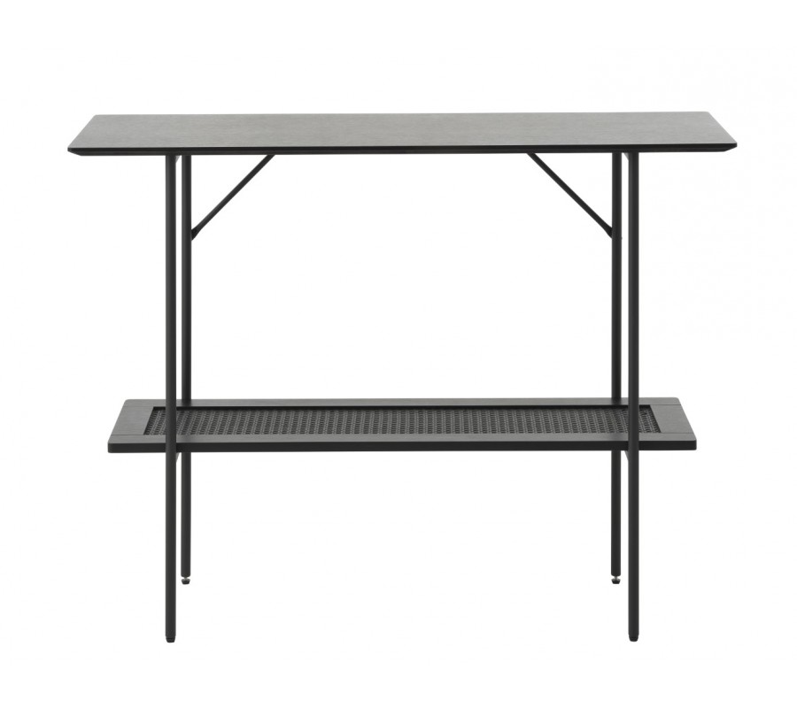 Industriálny moderný čierny konzolový stolík Malmo s obdĺžnikovou doskou a policou s ratanovým viedenským výpletom 100 cm