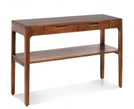 Luxusný masívny konzolový stolík Liberia s dvomi zásuvkami a jednou policou z mahagónového dreva v hnedej farbe 120 cm