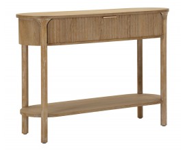 Art deco oválny konzolový stolík Meer z hnedého dreva s drážkovanou štruktúrou a zásuvkou 120 cm