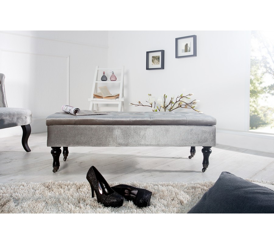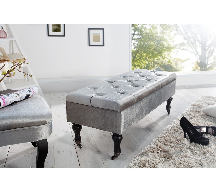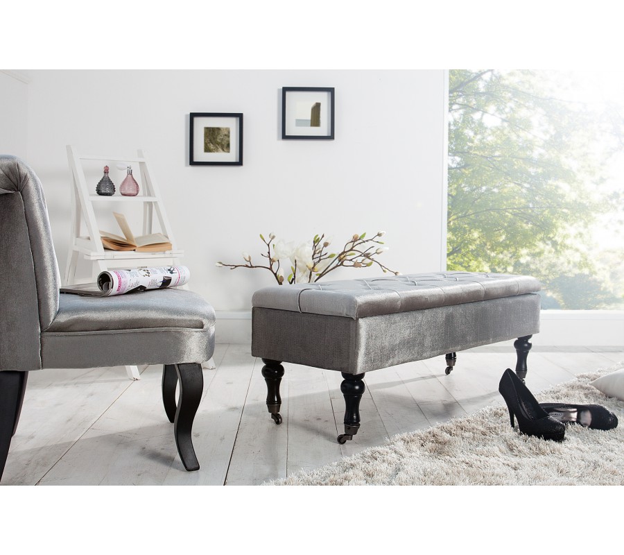 Štýlová lavica s úložným priestorom Glamour 110cm strieborná