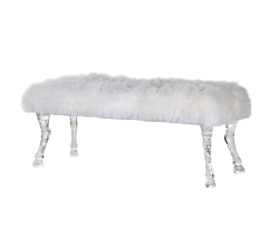 Jedinečná lavica Bellzeba je štýlovým doplnkom do luxusných interiérov, ktorý zaručene upúta už na prvý pohľad. Disponuje mongolským kožušinovým poťahom a priesvitnými lesklými nožičkami v tvare kopýt. Vďaka kožušine je lavica veľmi pohodlná a pôsobí skutočne exkluzívne. Vynikne najmä v luxusne zariadených priestoroch v svetlejších farbách s kovovými či inými kožušinovými doplnkami. Možno ju umiestniť na chodbe, v hale či obývačke.