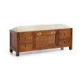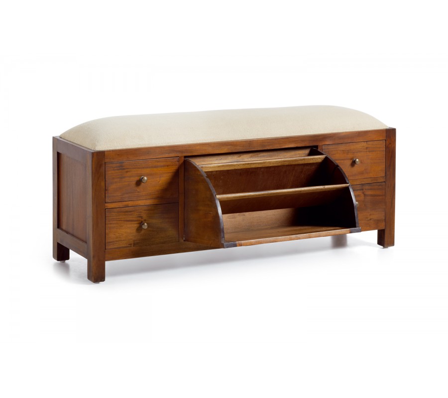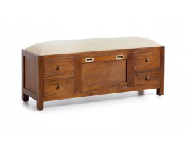Zaujímavá štýlová lavica s botníkom z kolekcie FLAMINGO je vyrobená z dreva CAOBA (Mahagón) s čerešňovou povrchovou úpravou, so zachovanou štruktúrou masívneho dreva v koloniálnom štýle. Kusy tejto kolekcie sa výborne hodia do svetlých priestorov k oživeniu a otepleniu k svetlým podlahám, či stenám.