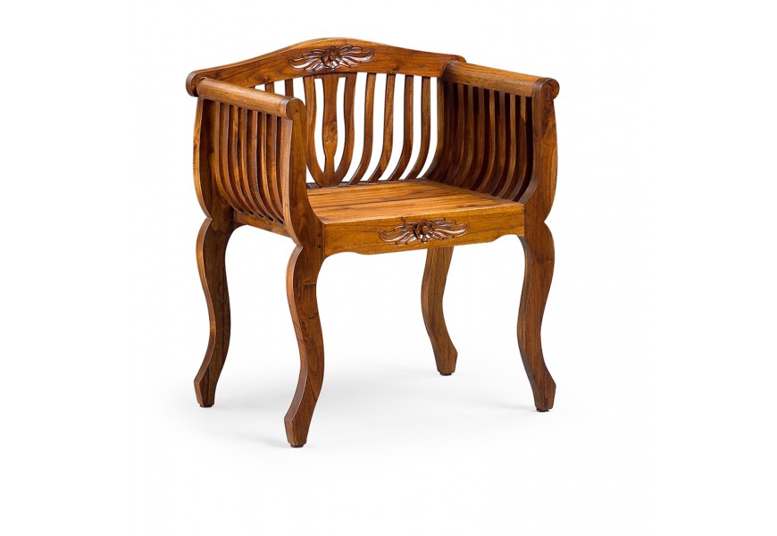 Štýlová lavica Flor Forja vyrobená z masívneho dreva je krásnym doplnkom, vhodným napríklad do vašej predsiene. Elegantný, klasický tvar a vyrezávané dekorácie robia túto lavicu ideálnu predovšetkým do rustikálne zariadených priestorov.
