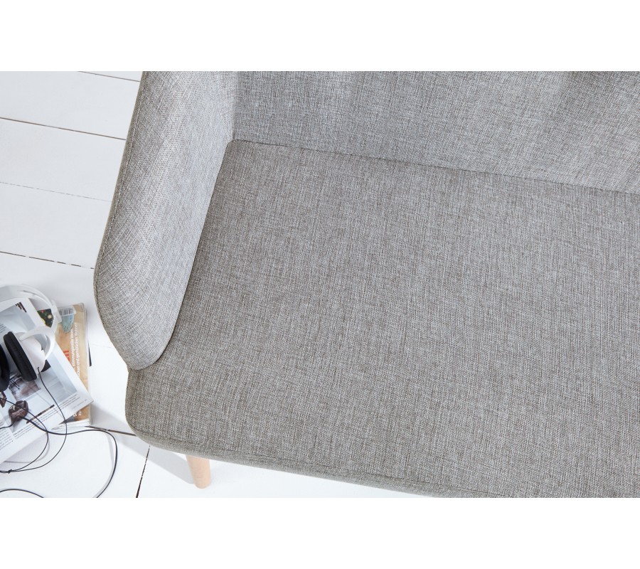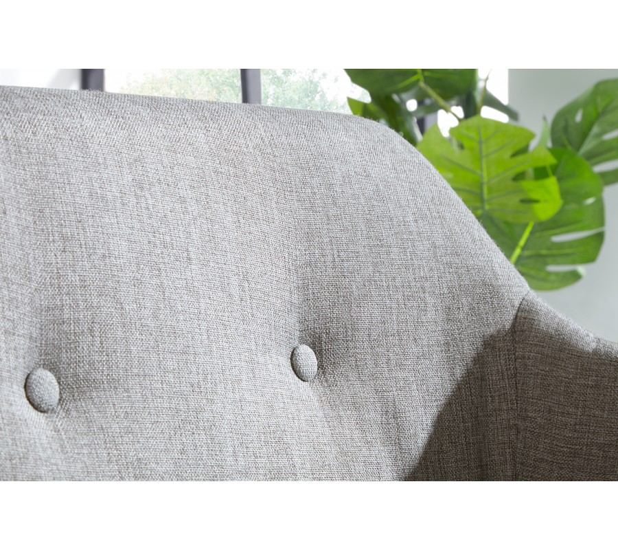 Jednoduché, zaoblené nohy zo svetlého, masívneho dreva nesú štýlový základ, potiahnutý príjemnou tkaninou v šedom tóne. Lavica je skvelo kombinovateľná s nábytkom a doplnkami v jemných odtieňoch béžovej, bielej, sivej či zlatej, no zaujímavou a taktiež vhodnou voľbou sú aj výrazné farby ako petrolejová alebo zelená. Šírka samotného sedadla je 103cm.