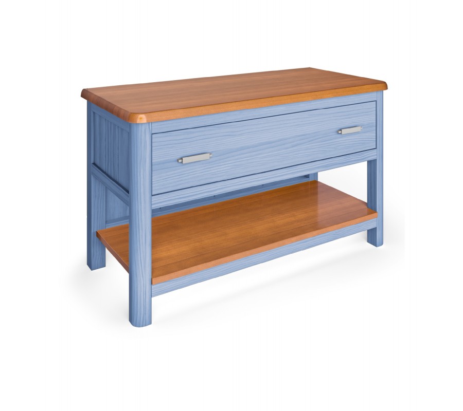 Luxusná moderná lavica Cerdena z masívneho dreva so zásuvkou a policou so zaoblenými rohmi 91 cm