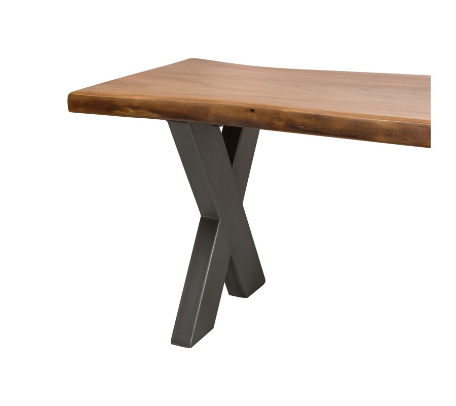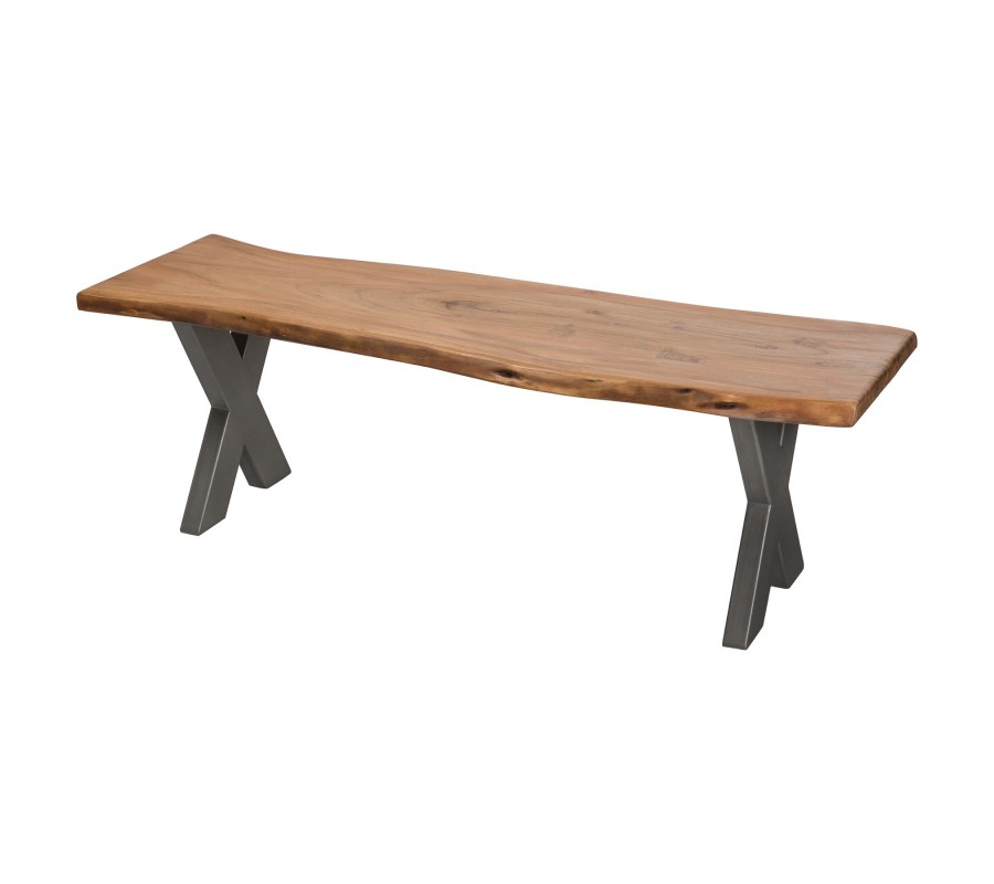 Masívna lavica z kolekcie nábytku Live Edge vás upúta moderným, minimalistickým dizajnom a kontrastnou kombináciou masívneho dreva a hladkého kovu. Okraje vrchnej dosky sú ponechané v prirodzených, nepravidelných tvaroch čo lavici dodáva jedinečný, autentický nádych. Lavica Live Edge bude ideálnym doplnkom k jedálenským stolom z rovnakej kolekcie. Materiál: akácia, kov