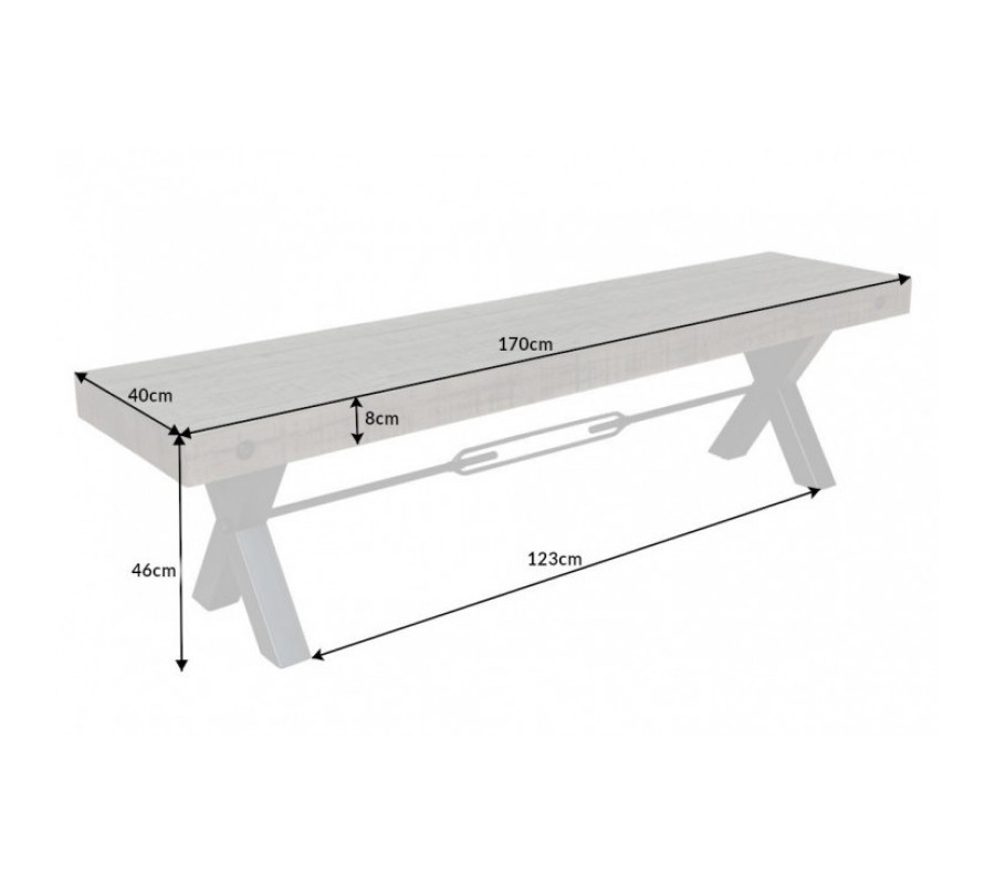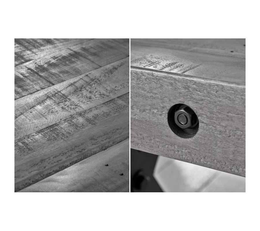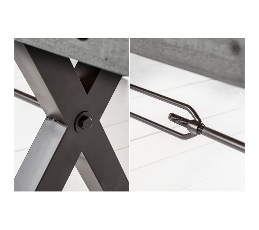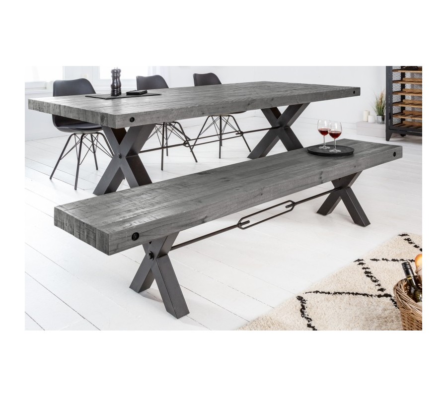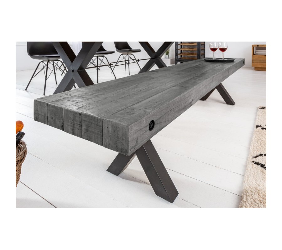 Štýlová lavica Freya je vkusným doplnkom do každej modernej či industriálne ladenej domácnosti. Skvelú kombináciu vytvorí vo vašej jedálni s jedálenským stolom z kolekcie Freya, možno ju však umiestniť aj samostatne, napríklad do predsiene či haly. Lavica je vyrobená z masívneho borovicového dreva, ktoré sa nesie v nadčasovej sivej farbe. Na povrchu je možno vidieť krásnu prirodzenú kresbu dreva, ktorá do vášho domova vnesie skutočný nádych prírody. Kombinácia s mohutnými kovovými nohami v tvare x vytvára dizajnovo pôsobivý industriálny vzhľad, ktorý si svoje miesto nájde v nejednej modernej či alternatívnej domácnosti. Lavicu Freya odporúčame umiestniť do svetlých miestností, krok vedľa však nespravíte ani kombináciou s tmavším nábytkom či výraznejšími farebnými doplnkami.