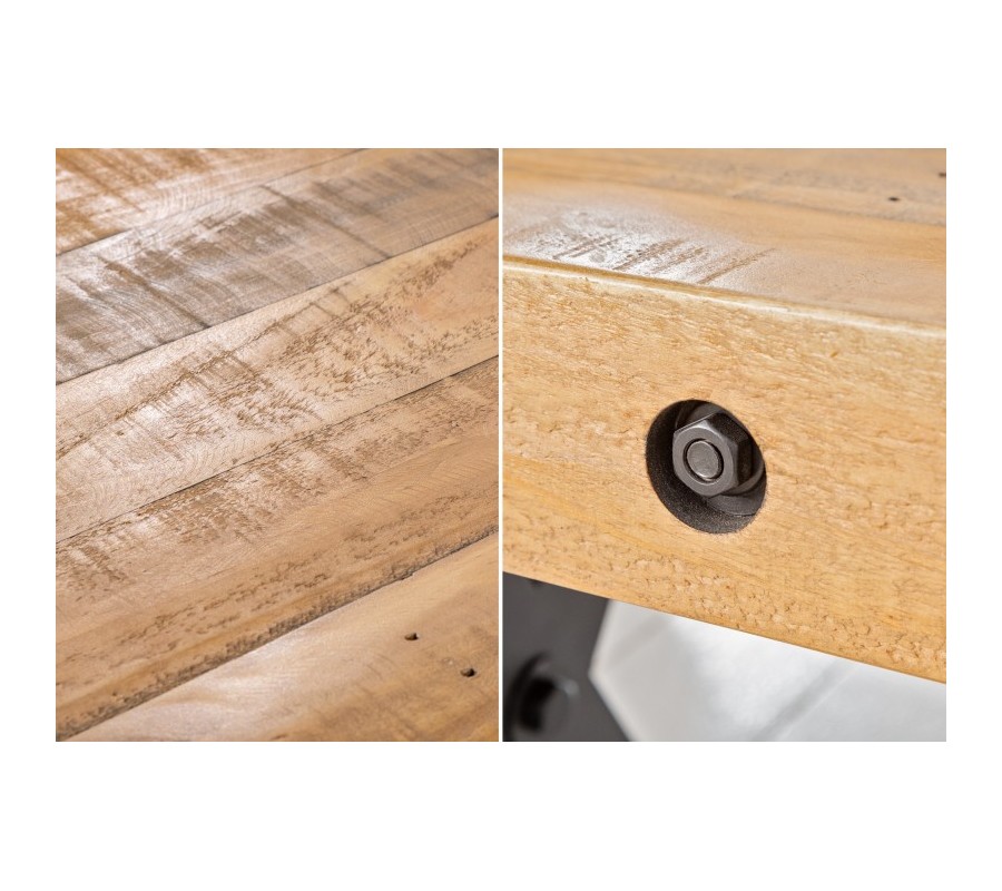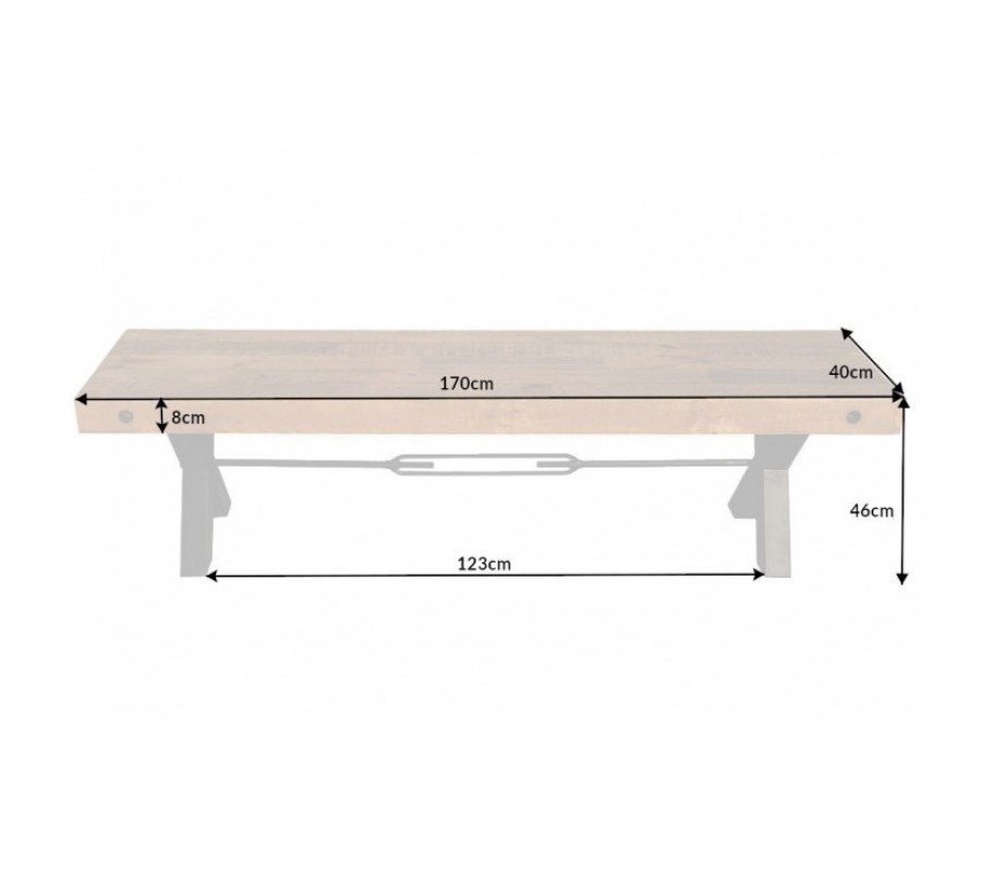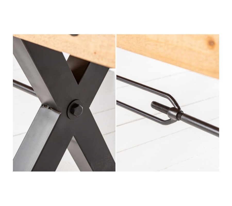 Štýlová lavica Freya zaujme každého, kto si potrpí na kvalitný nábytok a zároveň obľubuje moderné kúsky s čistými líniami a minimalistickým koloritom. Nesie sa v populárnom industriálnom štýle, ktorý je dosiahnutý kombináciou masívneho dreva a mohutných kovových nôh v tvare písmena x. Svetlohnedá farba dreva a čierna farba nôh tvoria spolu príjemný a elegantný súlad. S dolaďovaním doplnkov či samotným umiestením lavice teda zaručene nebudete mať problém- táto univerzálna kombinácia sa hodí skutočne všade! Či už sa rozhodnete lavicu Freya využiť v jedálni, hale či predsieni, odporúčame skombinovať ju s ďalším nábytkom z masívu či kovovými dekoráciami.