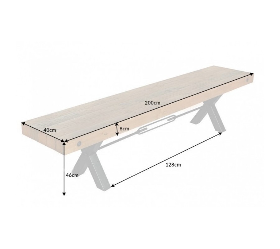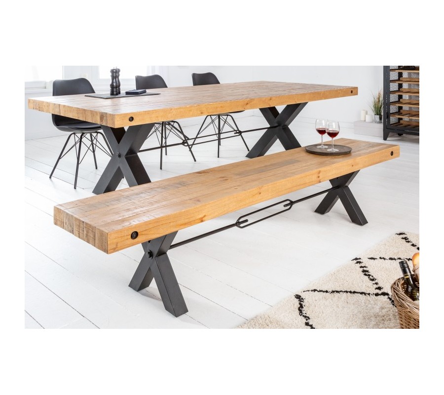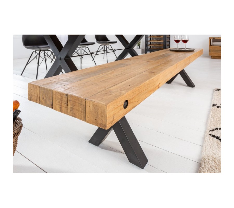 Industriálna štýlová lavica Freya z masívu a kovu 200cm