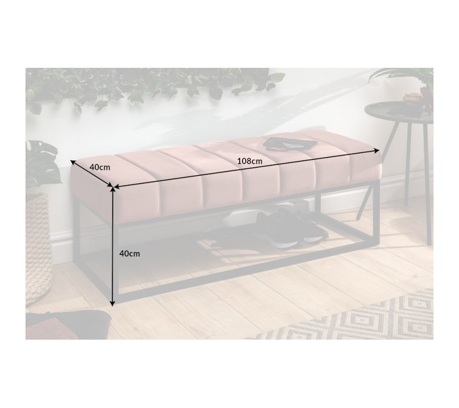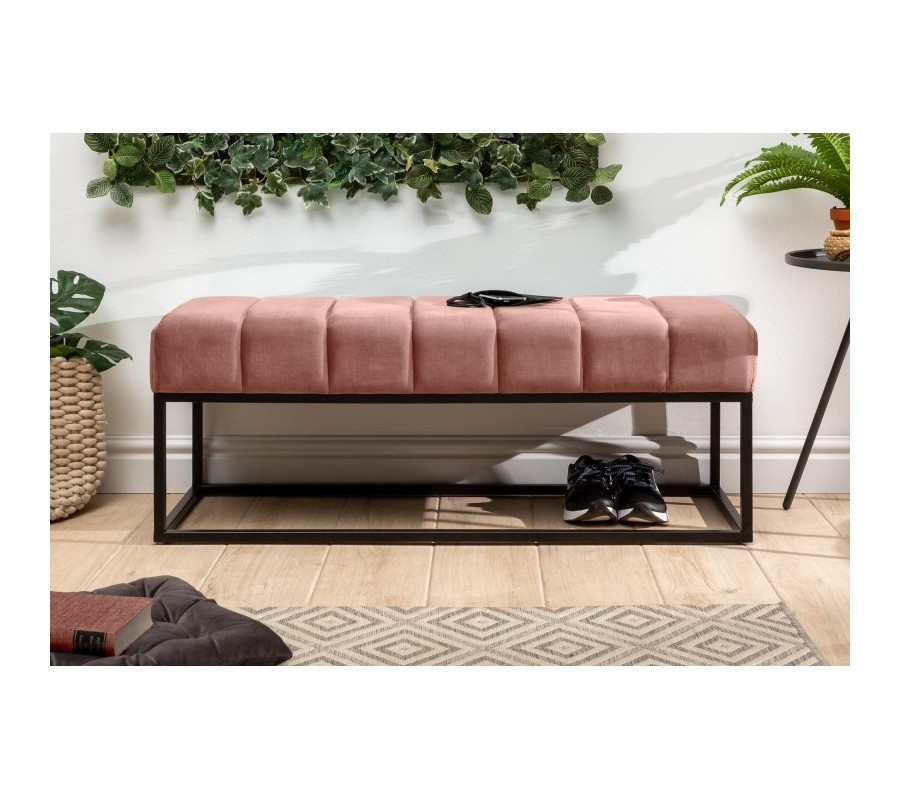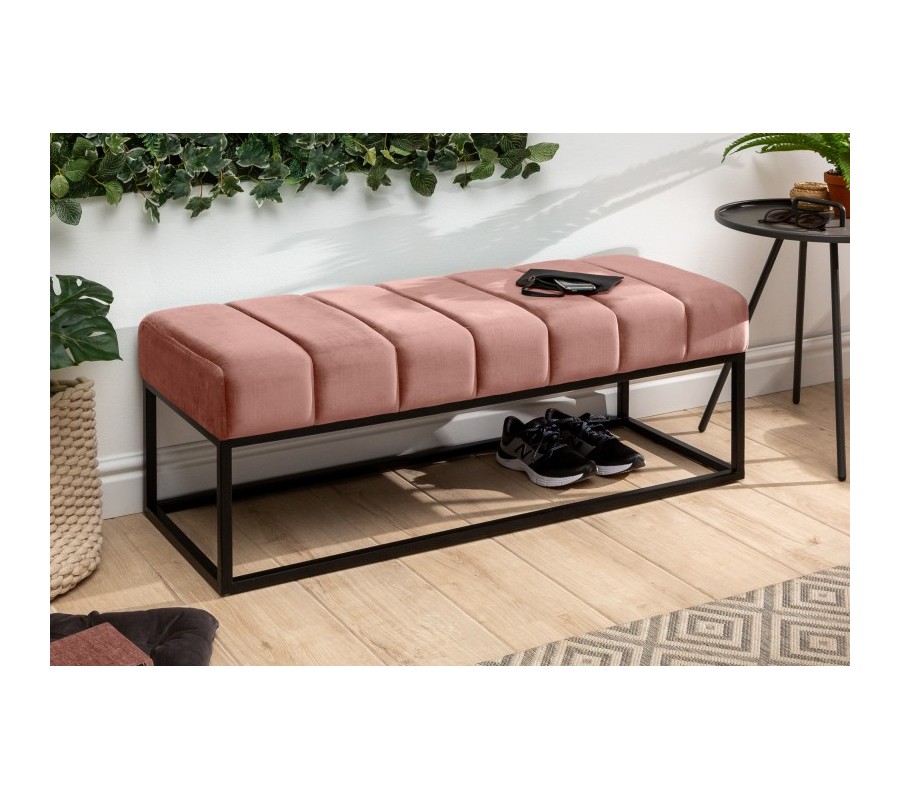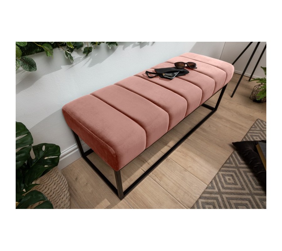 Retro lavica Taxil s ružovým zamatovým poťahom a kovovou konštrukciou 110cm