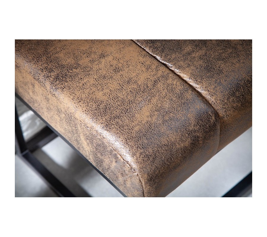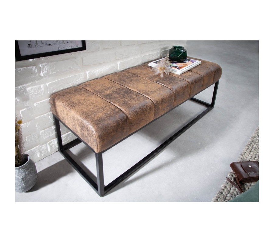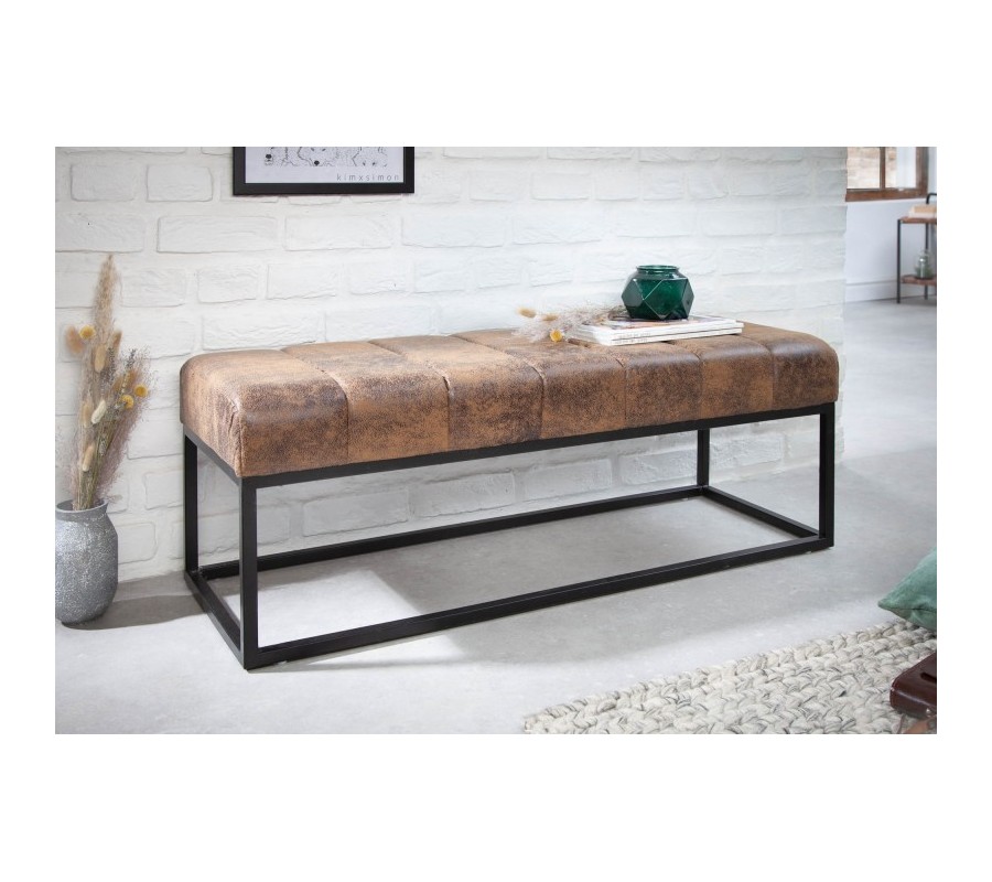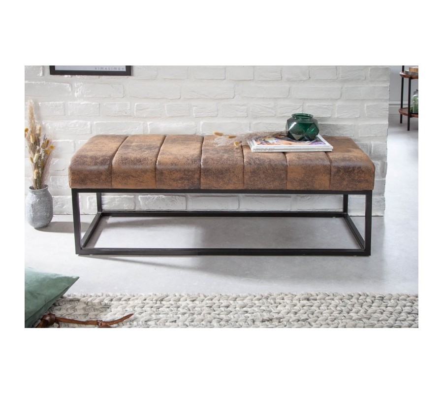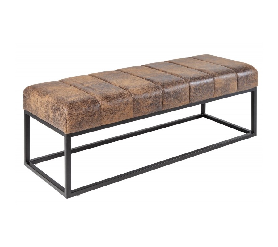 Retro štýlová lavica Taxil s hnedým poťahom a čiernou kovovou konštrukciou 110cm