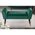 Art-deco štýlová lavica Karen so zeleným zamatovým poťahom 90cm