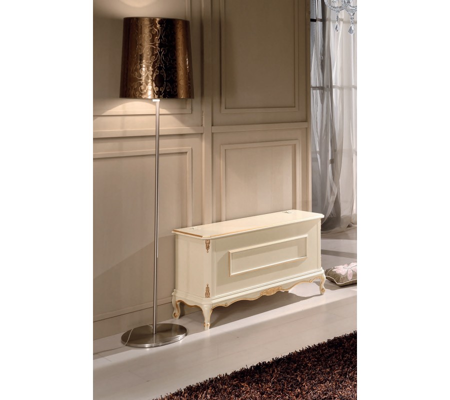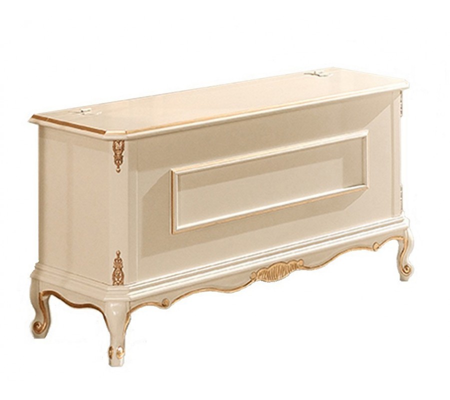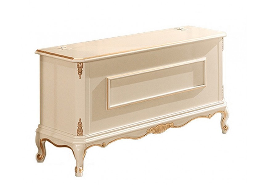 Naša jedinečná lavica z luxusnej kolekcie talianskeho nábytku Emociones jednoznačne zaujme každého už na prvý pohľad svojim unikátnym dizajnom. Lavica Emociones je vyrobená z kvalitného masívneho dreva, tým pádom má vynikajúcu odolnosť, pevnosť a trvácnosť. Lavica v slonovinovej farbe je zdobená bohatou vyrezávanou barokovou výzdobou vďaka ktorej sa každá predsieň rozčarí a vytvorí sa v nej romantická atmosféra. Taktiež je doplnená o zaoblené nožičky, čo je typickým znakom pre štýl známeho navrhára Thomasa Chippendale. Slávny návrhár bol jeden z najúspešnejších nábytkárov 18. storočia. Dizajn lavice obohacujú taktiež vkusné detaily v starej zlatej farbe. Na lavici sa otvára jej horná časť, tým pádom disponuje aj praktickým úložným priestorom, kde si môžete odložiť napríklad vaše zimné doplnky. Zapadne predovšetkým do klasicky, rustikálne a barokovo ladených priestorov, ktoré sú doplnené o ďalšie kúsky nábytku z našej Emociones kolekcie.