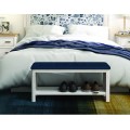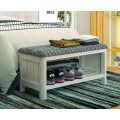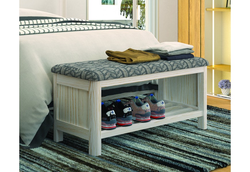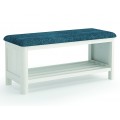 Moderná lavica z masívu Cerdena s otvorenou policou a vrchným čalúnením na nožičkách 90 cm