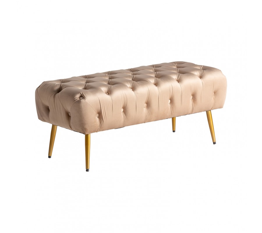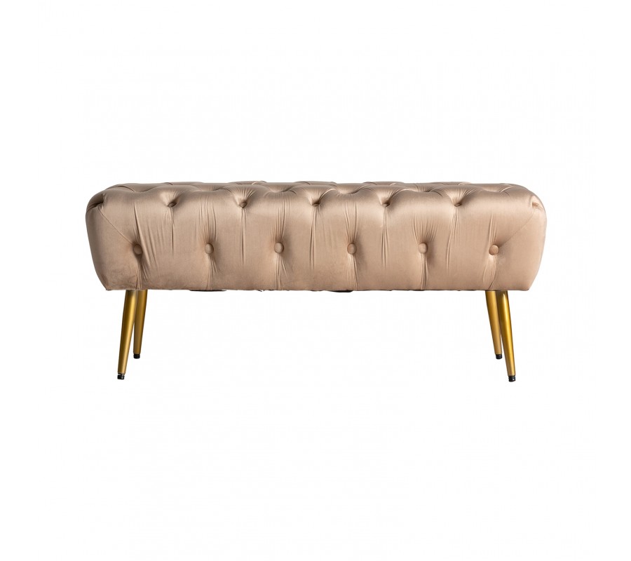 Art-deco čalúnená lavica Portkey do predsiene zo zamatu béžovej farby a so zlatými nožičkami 104cm
