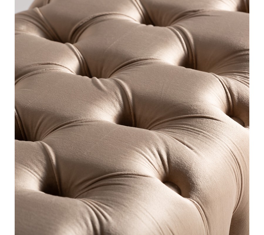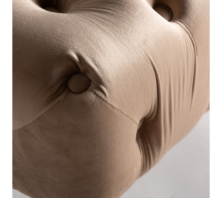 Štýlová lavica Portkey predstavuje elegantný kúsok vhodný na doplnenie moderných predsiení, chodieb či spální k prednej časti postele. Vkusný a nadčasový vzhľad tohto kúsku je dosiahnutý tvarovou jednoduchosťou a minimalistickým prevedením. Sedacia časť disponuje zamatovým čalúnením s chesterfield prešívaním nesúcim sa v jemnej latte farbe. Kontrast k jemnému poťahu tvoria kovové nožičky zlatej farby, vďaka čomu dostáva lavica Portkey nezameniteľný art-deco nádych. Svojím sviežim a zároveň vkusným dizajnom príjemne obohatí priestory moderných interiérov. Ak túžite po dokonalom art-deco efekte, odporúčame ju kombinovať s viacerými prvkami v zlatej farbe, zrkadlovým či kovovým nábytkom a vkusným koberčekom či zamatovým vankúšikom.