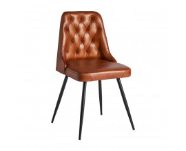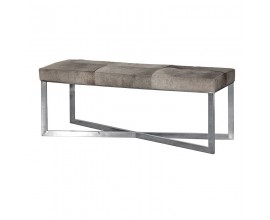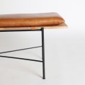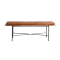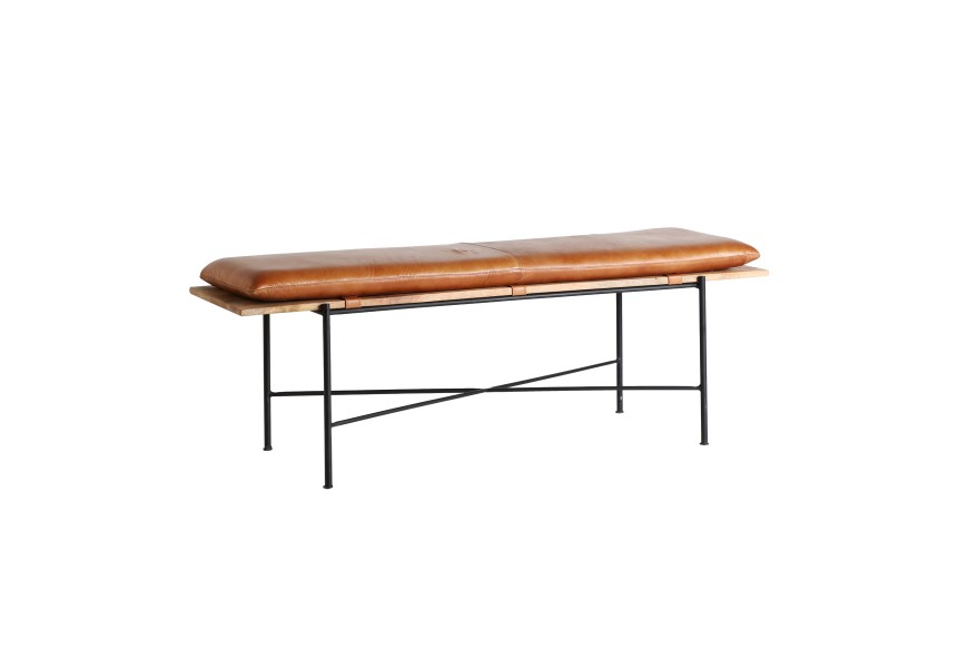 Luxusná industriálna lavica Kingsley z dreva a kovu s koženým hnedým čalúnením 132cm
