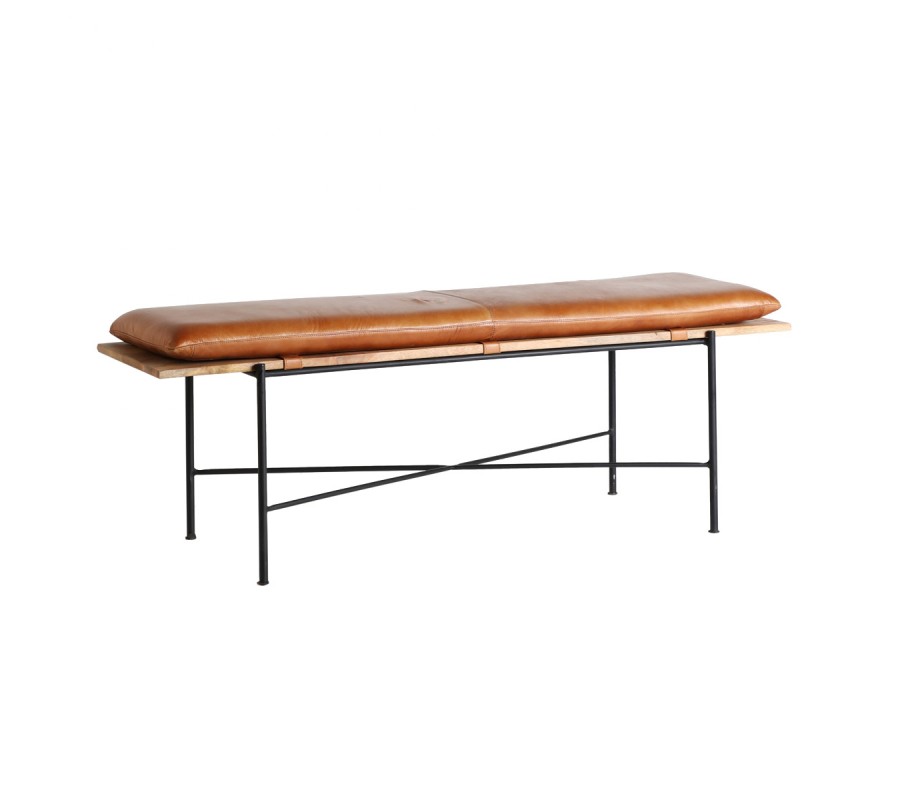 Štýlová lavica Kingsley predstavuje praktické a estetické riešenie do industriálne ladených predsiení či chodieb, ale aj jedální alebo moderných kaviarenských priestorov. Lavica pozostáva z konštrukcie kombinujúcej čierny kov a svetlohnedé mangového masívne drevo. Jednoduchá a nadčasová konštrukcia je doplnená o dizajnový prvok v podobe koženého vankúša, ktorý sa zároveň postará o váš dokonalý komfort pri sedení. Vintage hnedá farba poťahu príjemne dopĺňa celkový alternatívny vzhľad lavice. Luxusná lavica Kingsley vkusne doplní vaše priestory a vnesie do nich nádych industriálneho štýlu. Umocniť ho môžete kombináciou s nábytkom z kovu či prírodných materiálov, jednoduchými geometrickými dekoráciami či nahrubo upracovanými surovými kúskami vyzdvihujúcimi industriálnu estetiku.