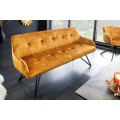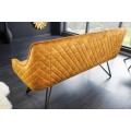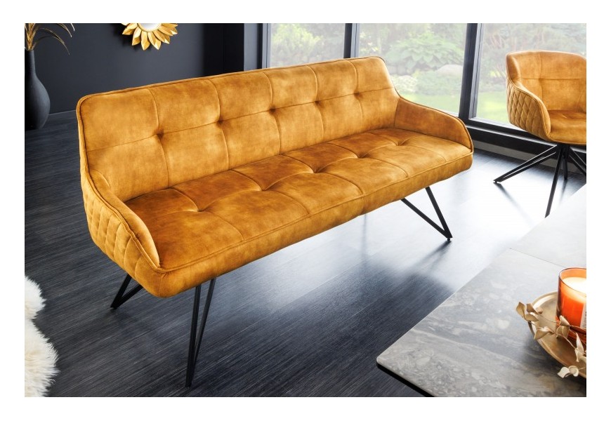 Retro štýlová lavica Dunelon so žltým zamatovým čalúnením a čiernymi kovovými nožičkami 160cm