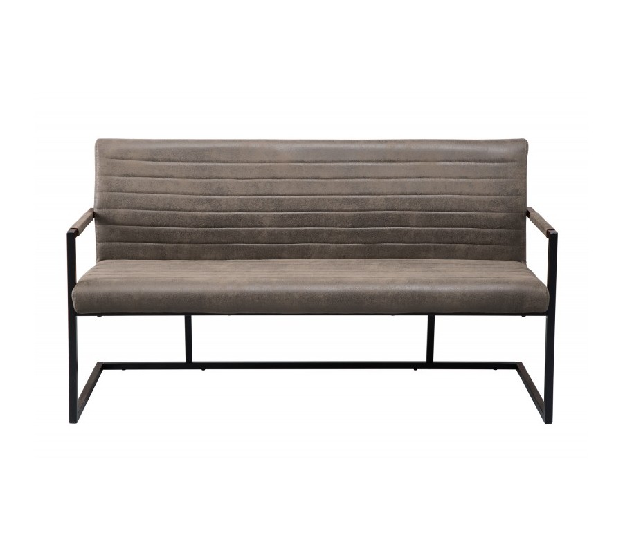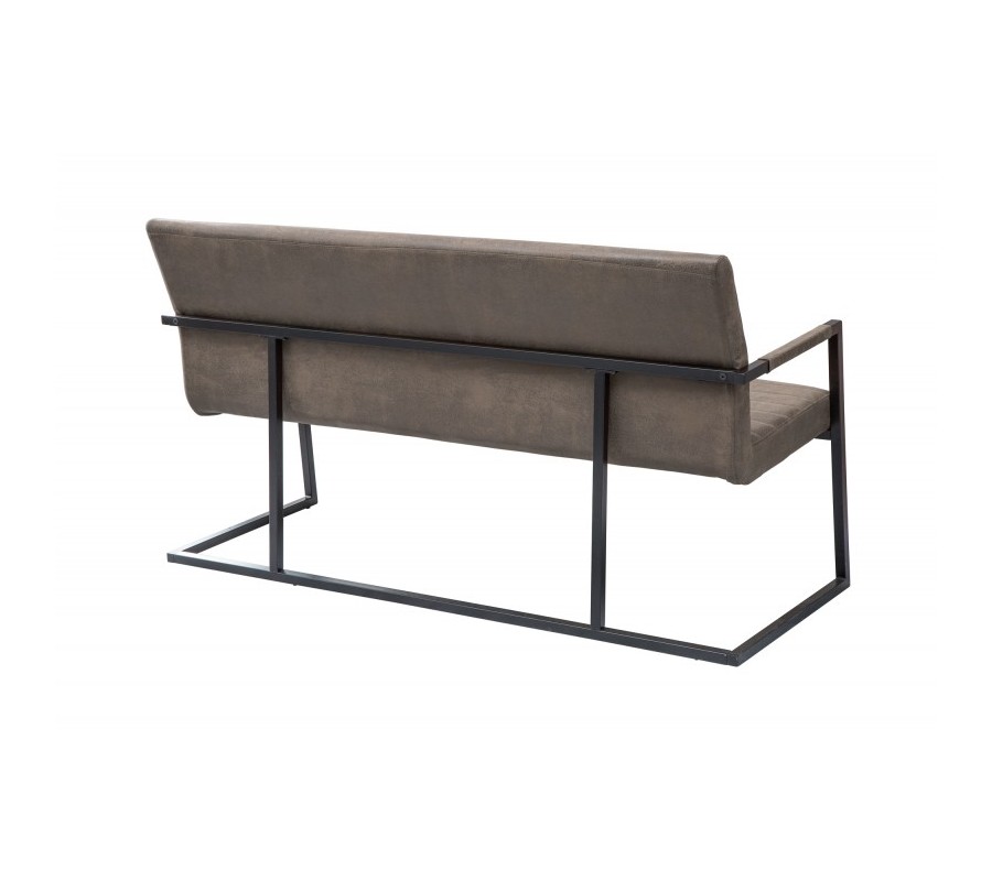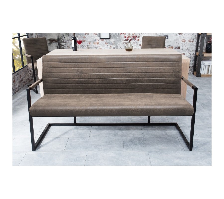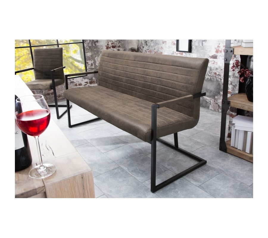 Industriálna lavica Imperial so sivohnedým čalúnením a s čiernou kovovou konštrukciou 160cm