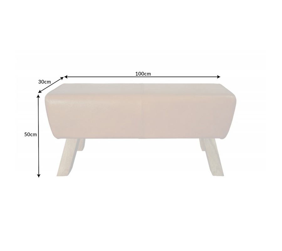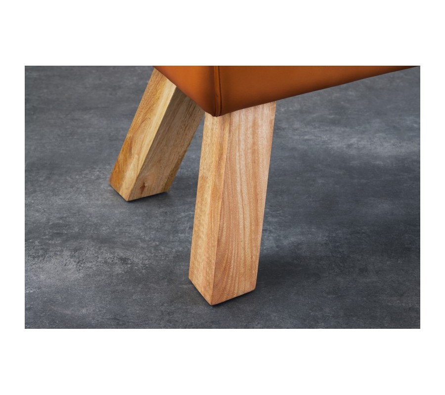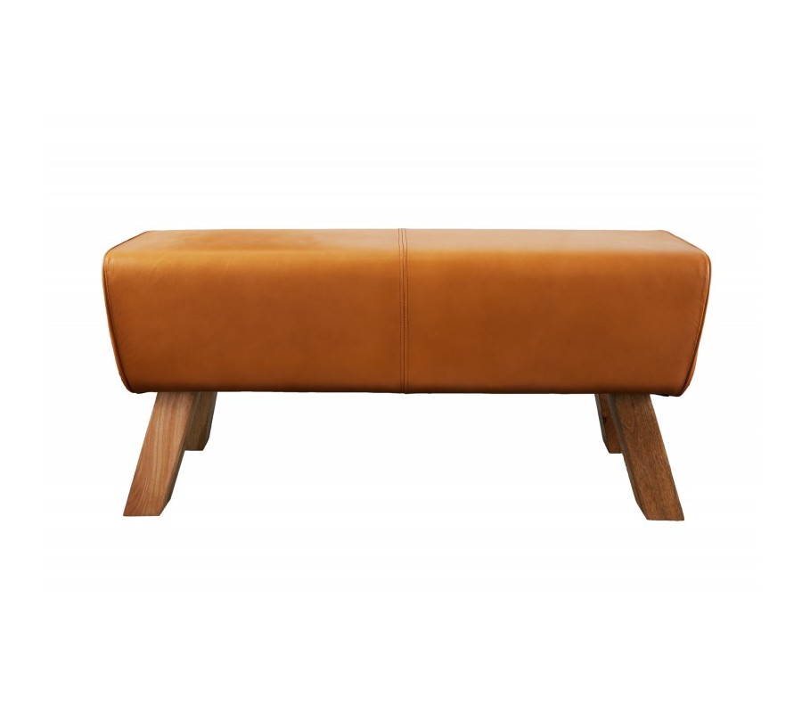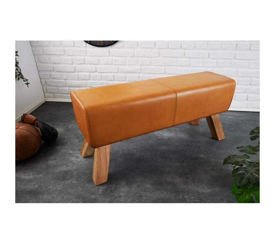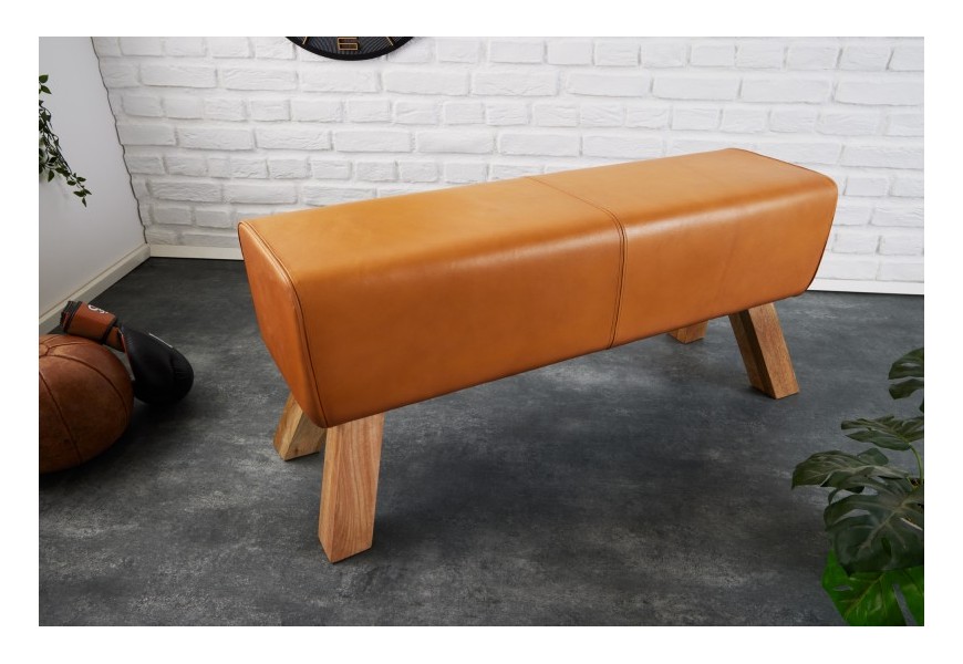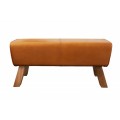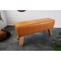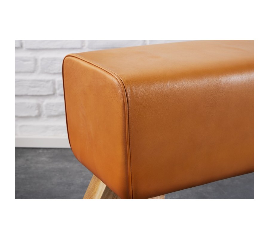 Dizajnová lavica Sodor z pravej kože v koňakovej hnedej farbe s drevenými nohami 100cm