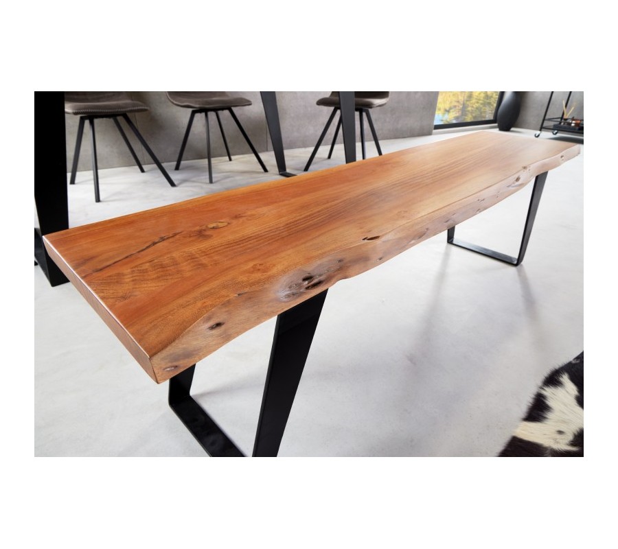 Industriálna lavica Mammut z akáciového masívu v prírodnej hnedej farbe na antracitových nožičkách 155cm