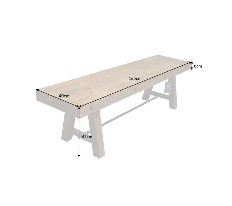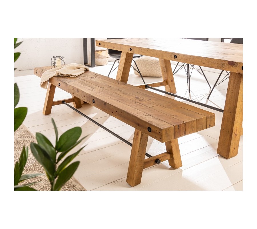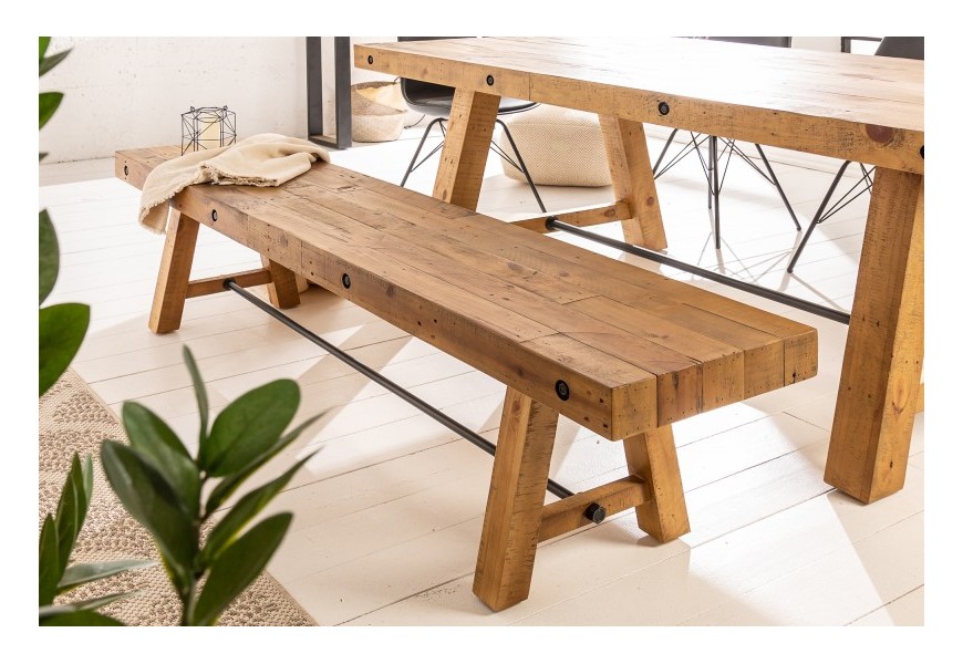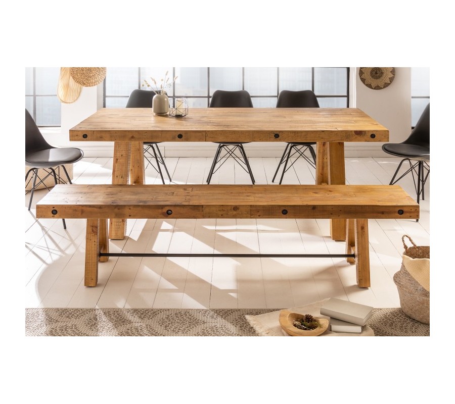 Industriálna jedálenská lavica Roseville z masívneho dreva vintage hnedej farby 165cm