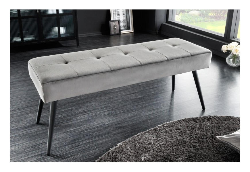 Štýlová sivá lavica Soreli v modernom zamatovom prevedení 100cm