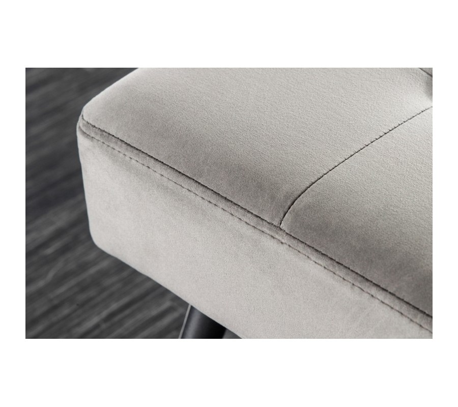 Centrálnym prvkom modernej lavice Soreli je jej zamatové čalúnenie v sofistikovanej sivej farbe, ktoré evokuje pocit jemnosti, pôvabu a pohodlia. Príjemná textúra zamatového čalúnenia je jemne zdôraznená štvorcovým dizajnovým prešívaním, ktoré obohatí moderný vzhľad lavice.