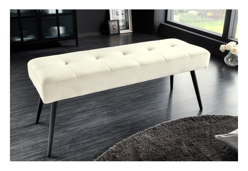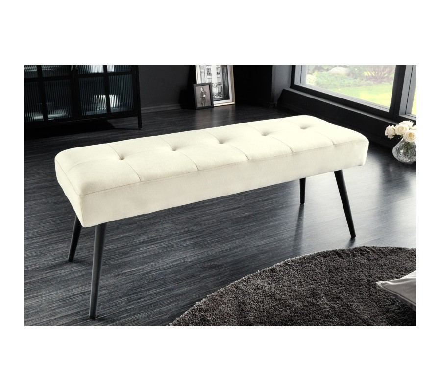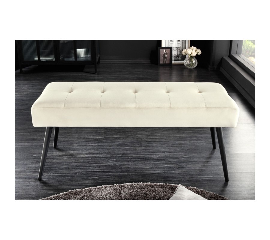 Zamilujte si jednoduchosť a elegantný dizajn modernej lavice z kolekcie Soreli. Tento dizajnový kúsok nábytku sa môže pochváliť svojím zamatovým čalúnením v šampanskej bielej, až jemne žltej farbe, ktoré zaručene pritiahne pozornosť svojou nadčasovou príjemnou estetikou.