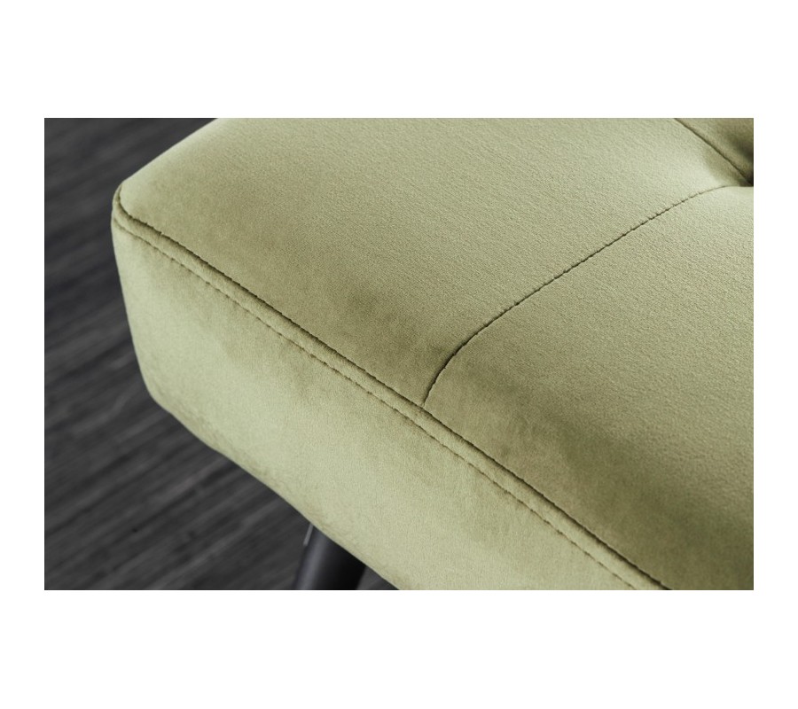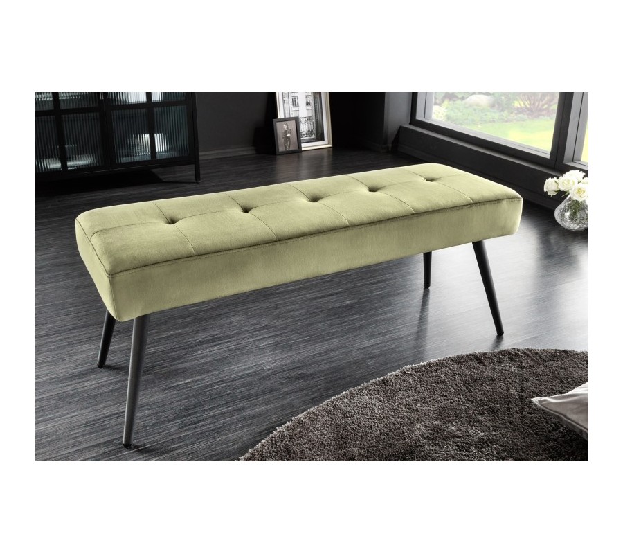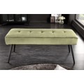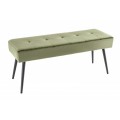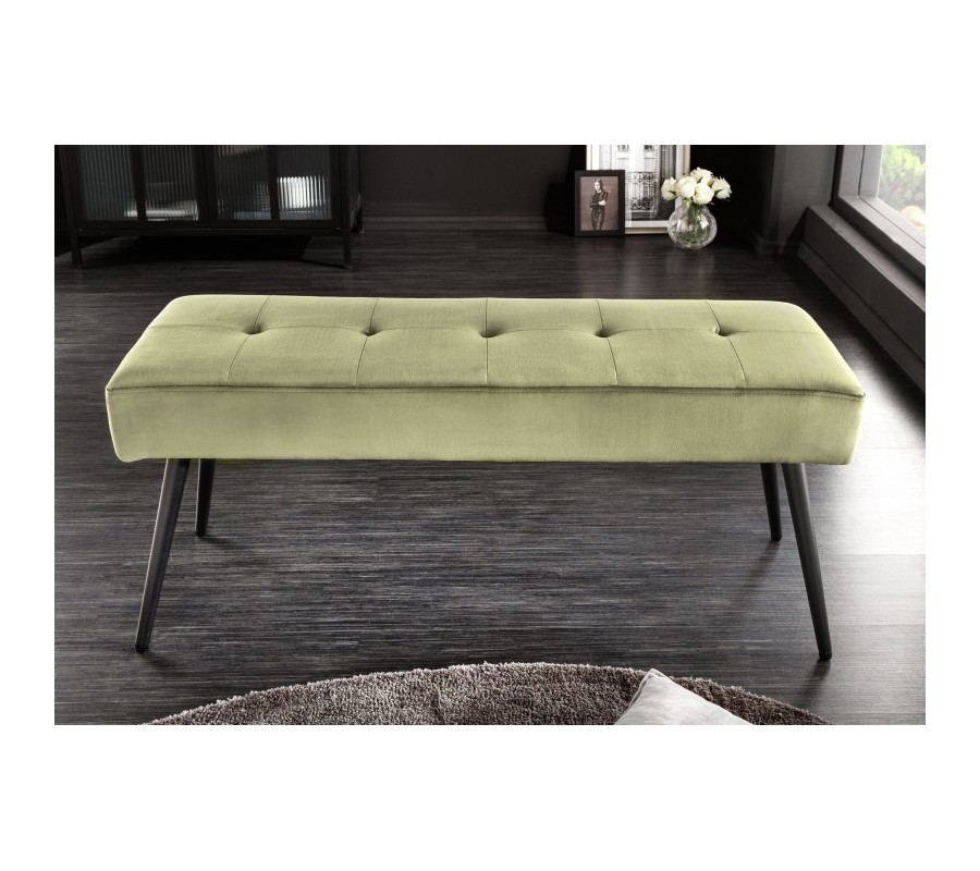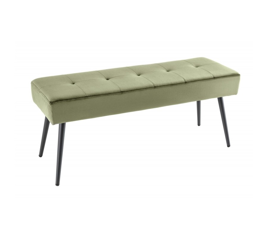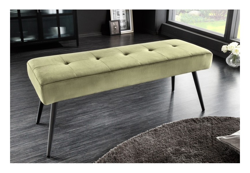 Dizajnu lavice dominuje jej príjemné zamatové čalúnenie vo výraznej olivovo zelenej farbe. Olivovo zelená farba čalúnenia krásne vynikne v kontraste s čiernymi kovovými nožičkami, ktoré nie len perfektne doplnia celkovú estetiku produktu, ale taktiež prinesú do Vášho interiéru nádych industriálneho štýlu.