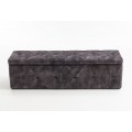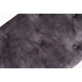 Lavica je potiahnuté sivou zamatovou látkou, ktorá je vyrobená z mikrovlákna. Tento materiál je mimoriadne odolný voči každodennému používaniu a nenáročný na údržbu. Zároveň je príjemný na dotyk a dodáva nábytku luxusný vzhľad. Ten ešte podčiarkuje dekoratívne prešívanie v chesterfield štýle s okrúhlymi gombíkmi. Sivá farba pôsobí elegantným dojmom a lavicu tak môžete zakomponovať do širokého spektra interiérov.