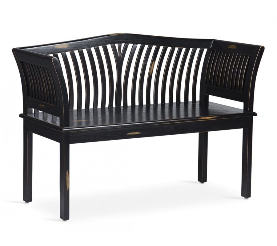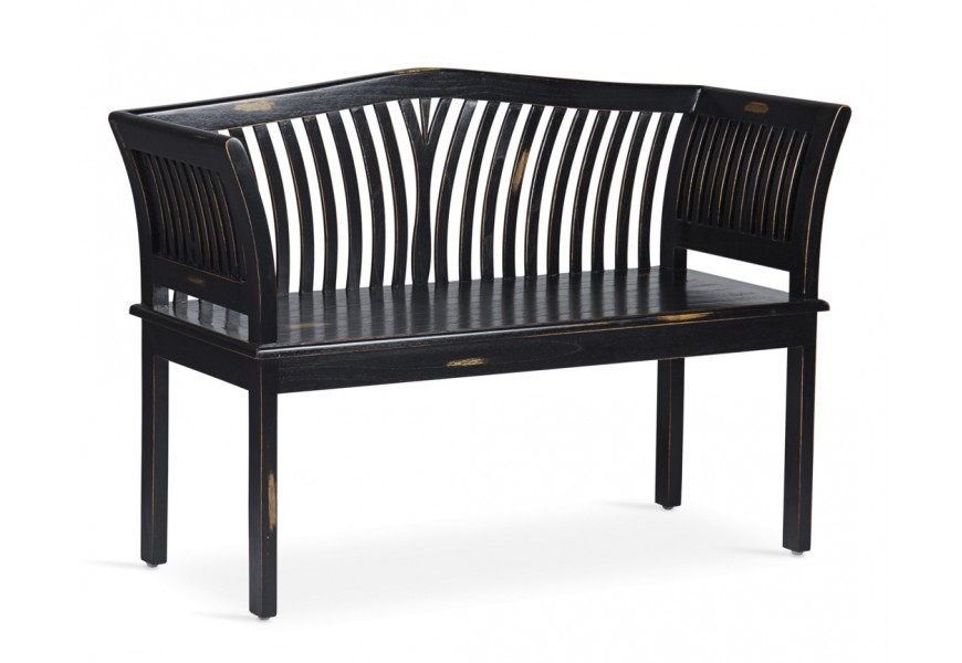 Luxusná čierna vintage dvojmiestna lavica Forja s opierkou z masívneho mindi dreva 117 cm
