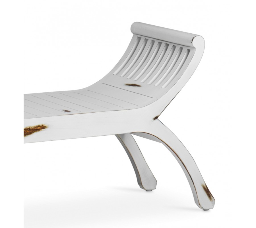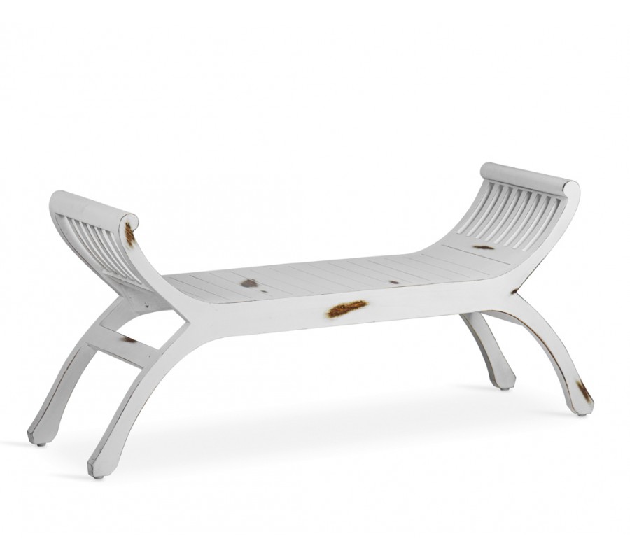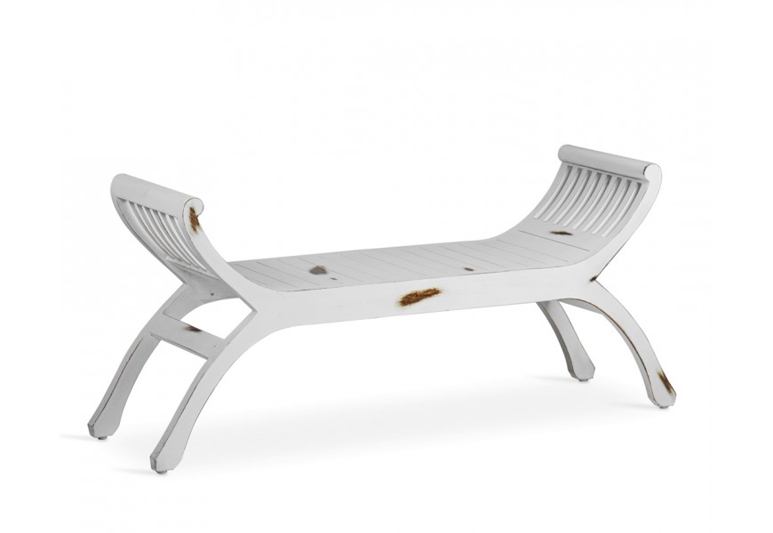 Štýlová vintage biela masívna lavica Forja so zahnutými opierkami 120 cm