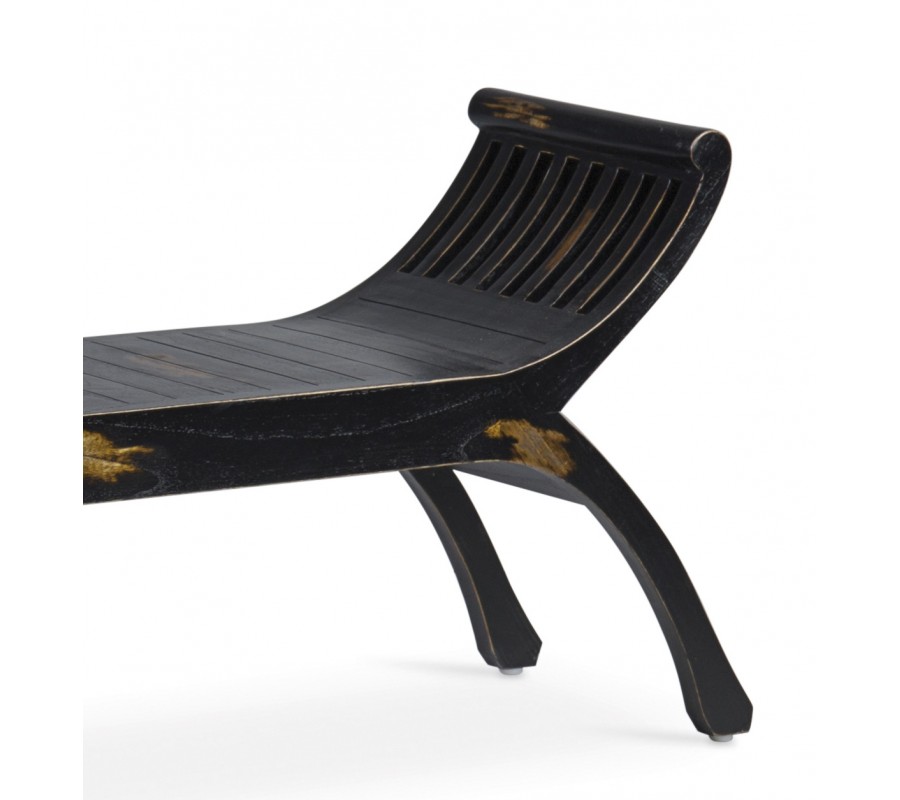 Štýlová dvojmiestna vintage čierna lavica Forja z masívneho deva so zahnutými opierkami 120 cm