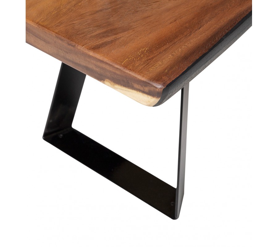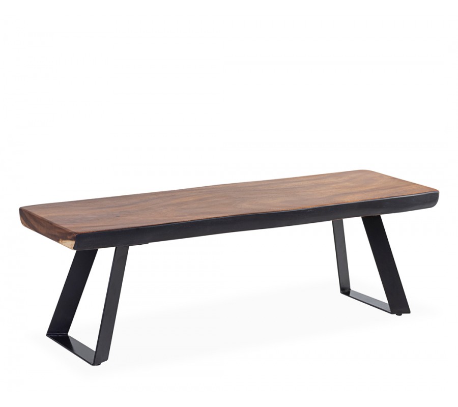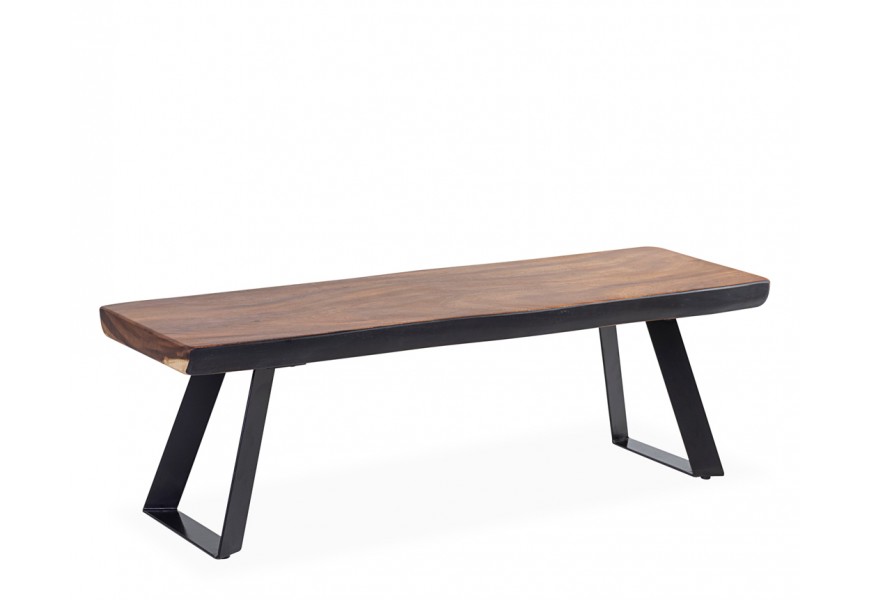 Moderná industriálna lavica Samanea z masívneho dreva suar v hnedej farbe s kovovými nožičkami 126 cm